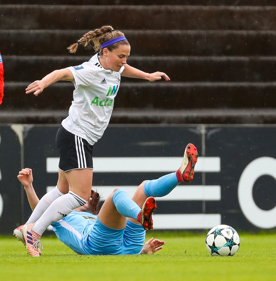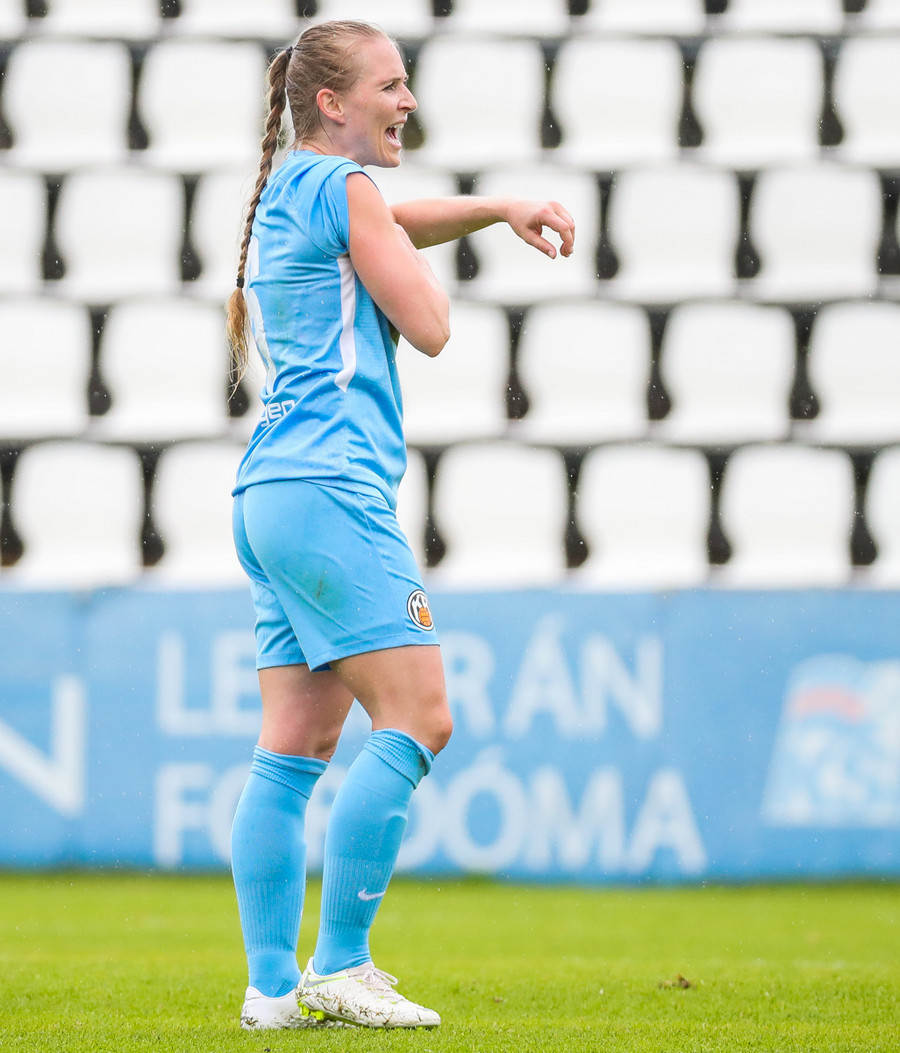 Það er slátrun í gangi og þetta mark var snyrtilegt vægast sagt. Boltinn kemur inn á teiginn þar sem Freyja tekur við honum og hælar hann svo fallega á Sofíu sem að getur keki annað en skorað úr þessu færi! Virkilega vel gert hjá Freyju þarna!