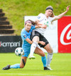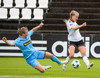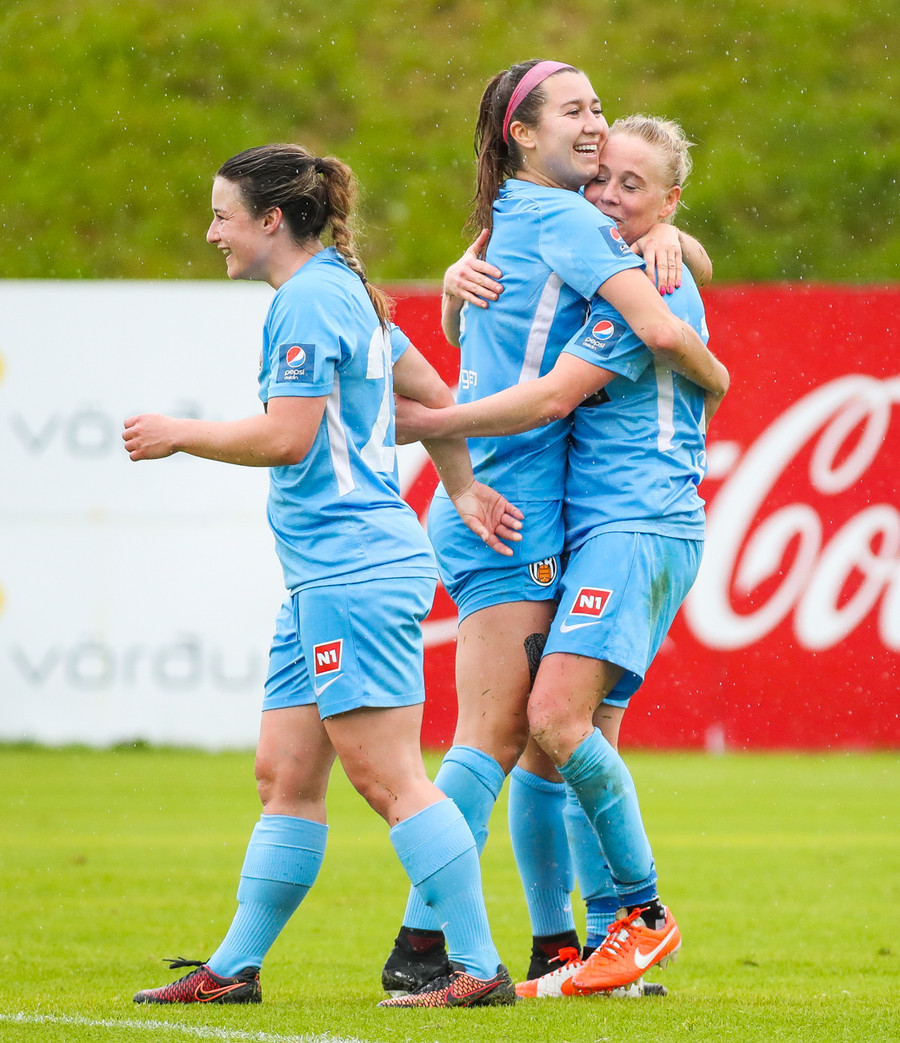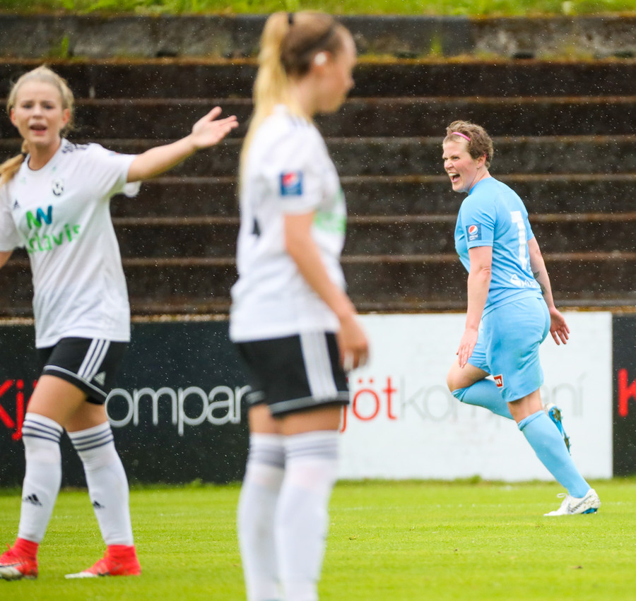 HVAÐ ER AÐ GERAST HÉRNA! Allt í einu tvö mörk BOOM og game over! Katrín Ómars setur boltann á Móníku og hún tekur vippu sem að fer yfir Anítu í markinu og dettur inn í fjærhornið.