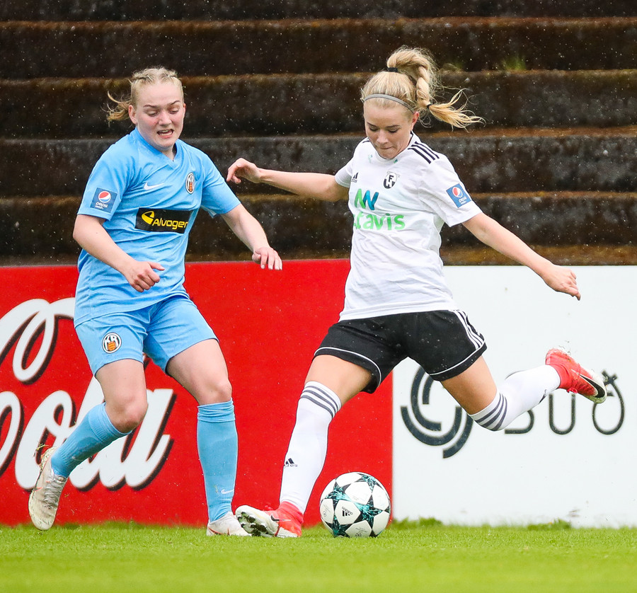 FH rosalega nálagt því að komast í gott færi þegar að Birta Georgs tekur geggjaðan sprett og fer auðveldlega framhjá varnarmanni KR. Hún leggur boltann síðan út fyrir teiginn á Jasmín sem að reynir að þræða boltann einu skrefi lengra en Tijana Krstic gerir frábærlega í að ná stíga fyrir sendinguna.