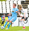 KR fá hornspyrnu eftir baráttu Móníku og Guðnýjar.