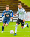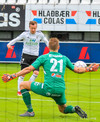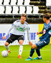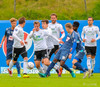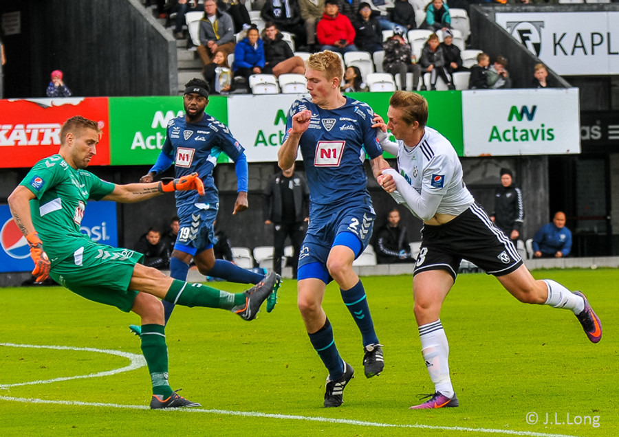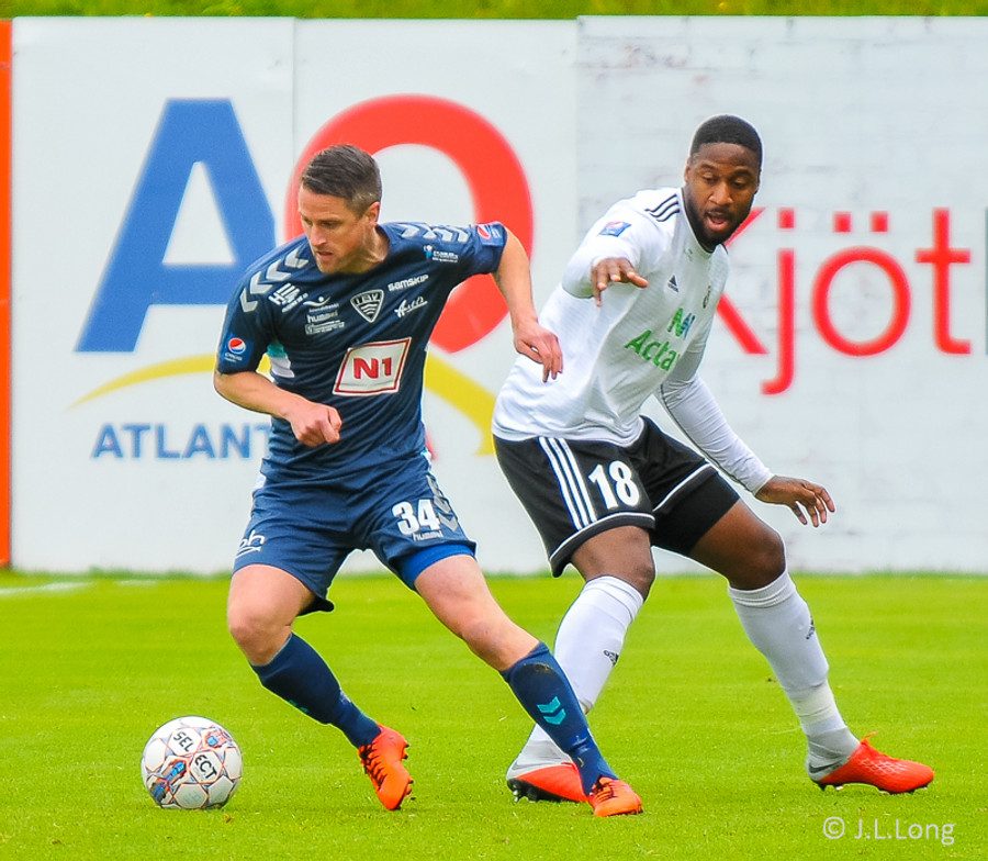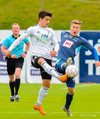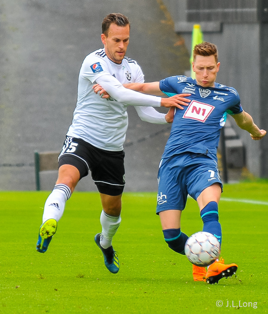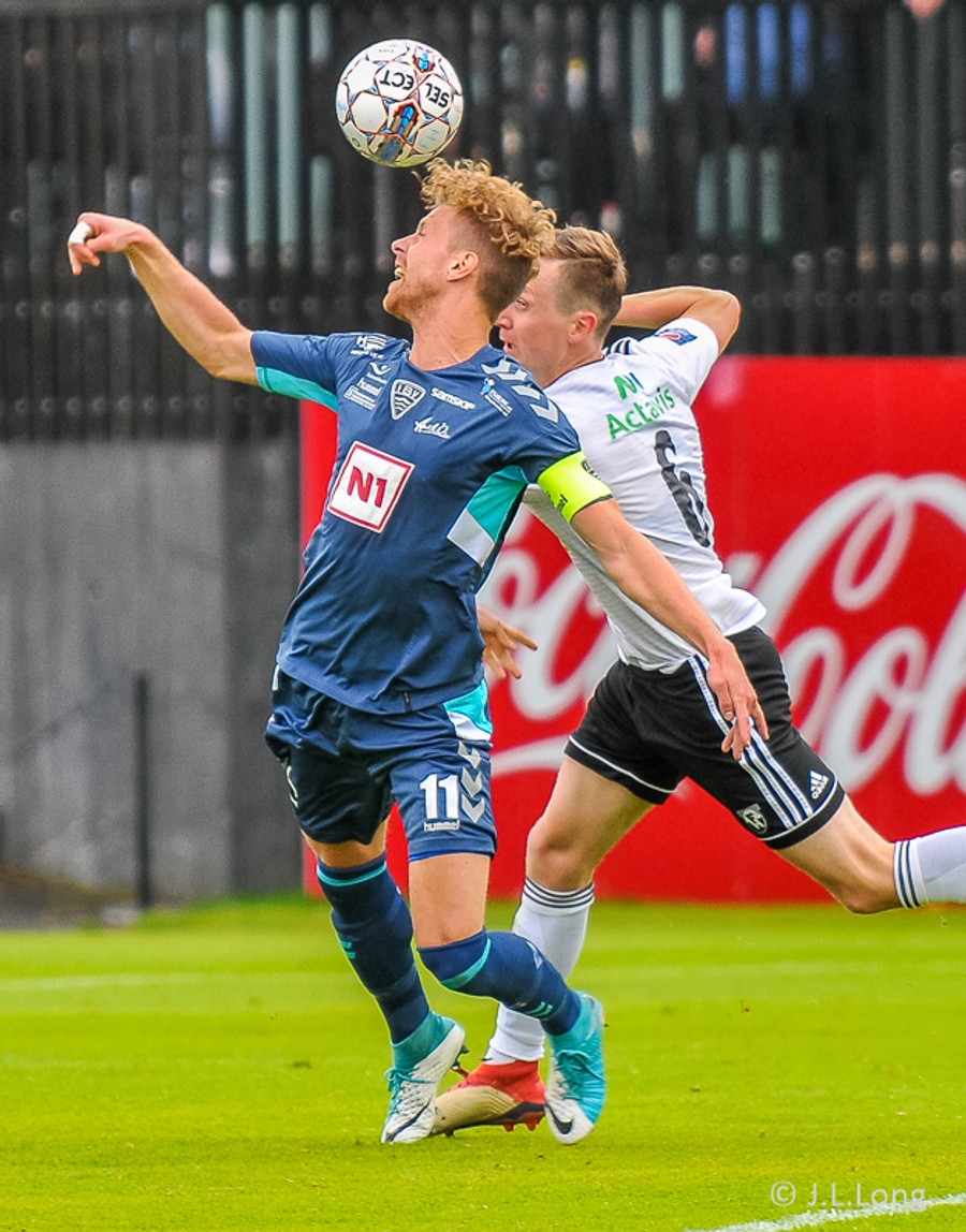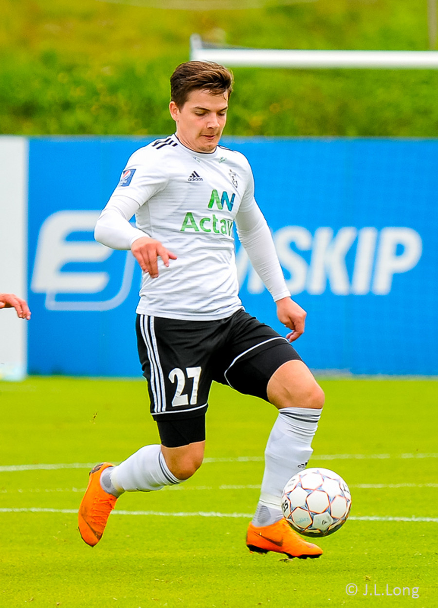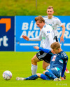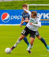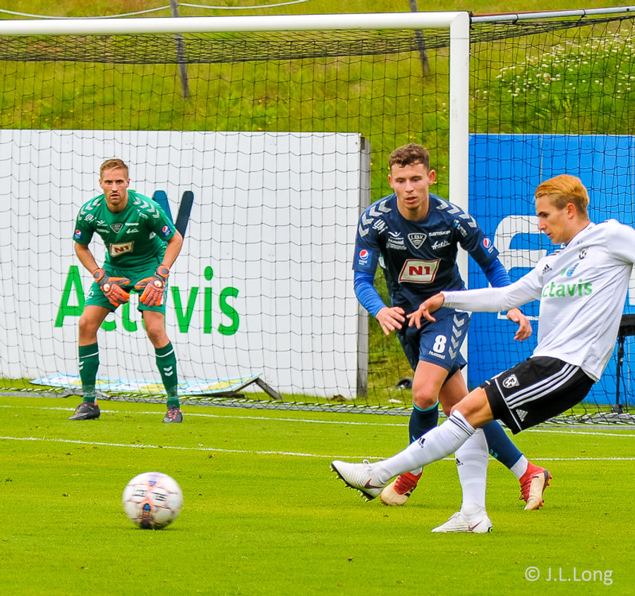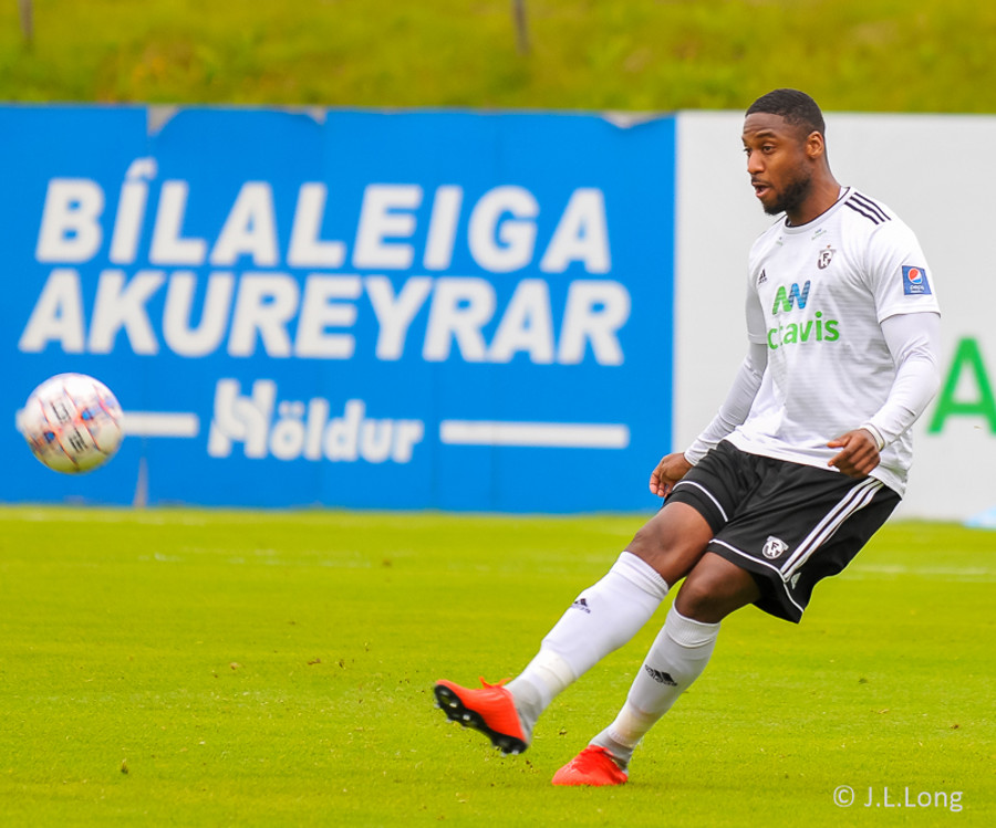 Jákup Thomsen með skot utan teigs beint á Halldór í markinu. Fín staða en skotið slakt.
