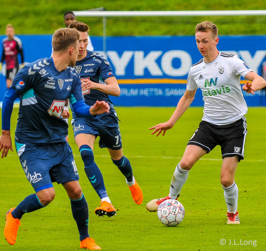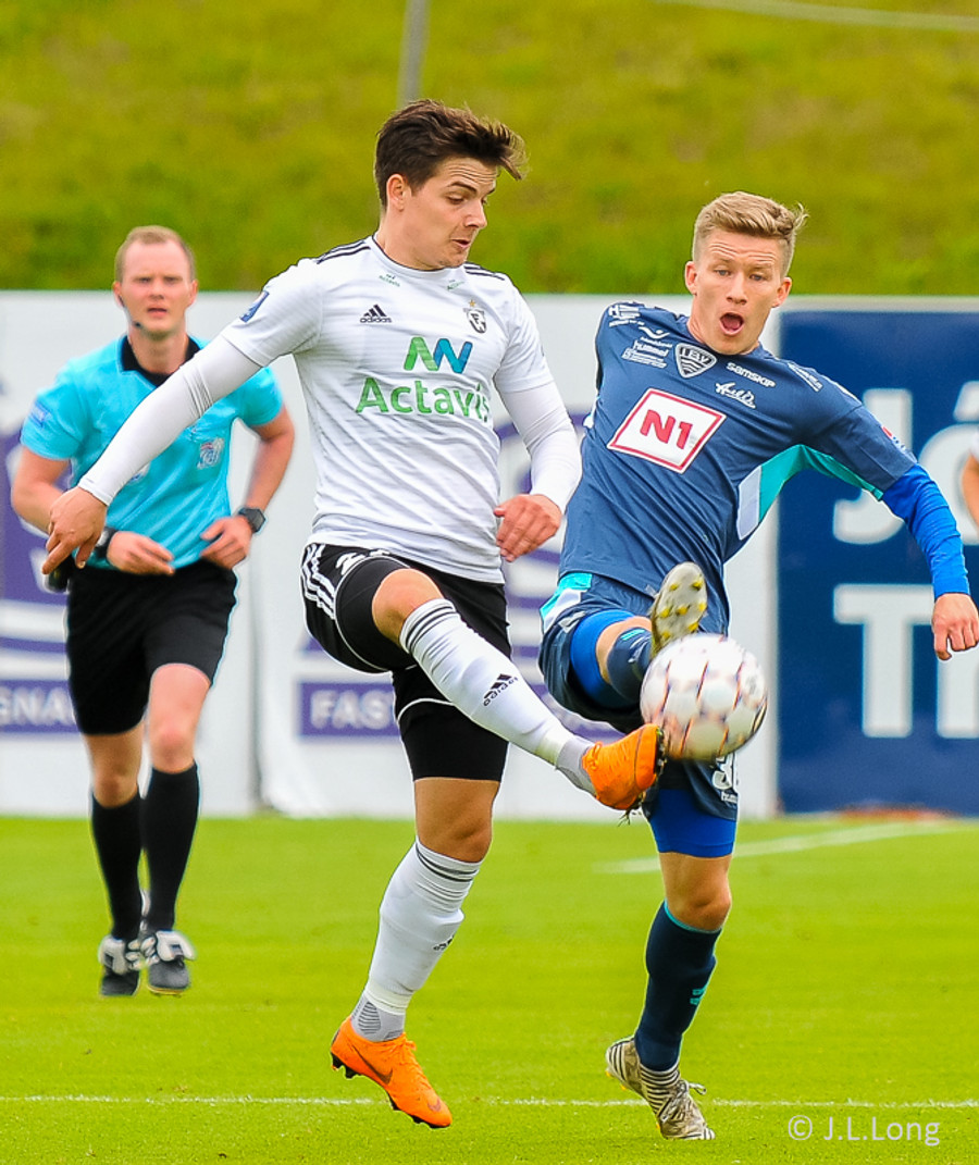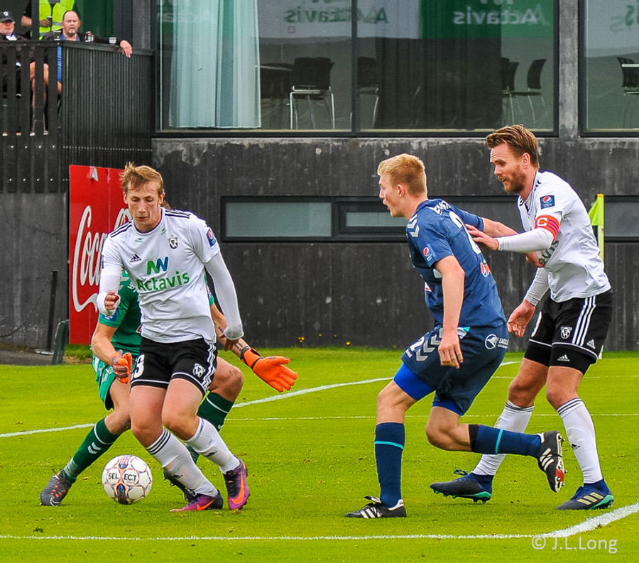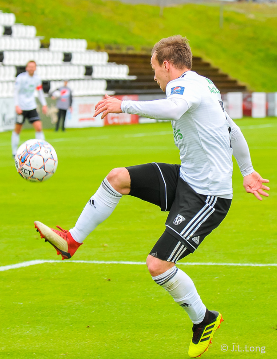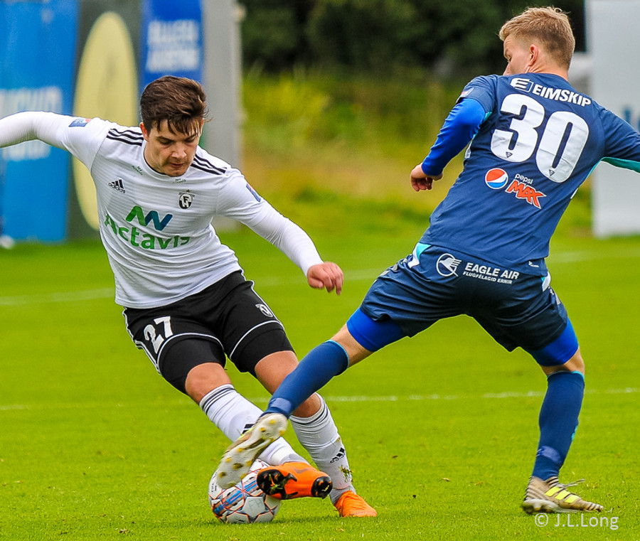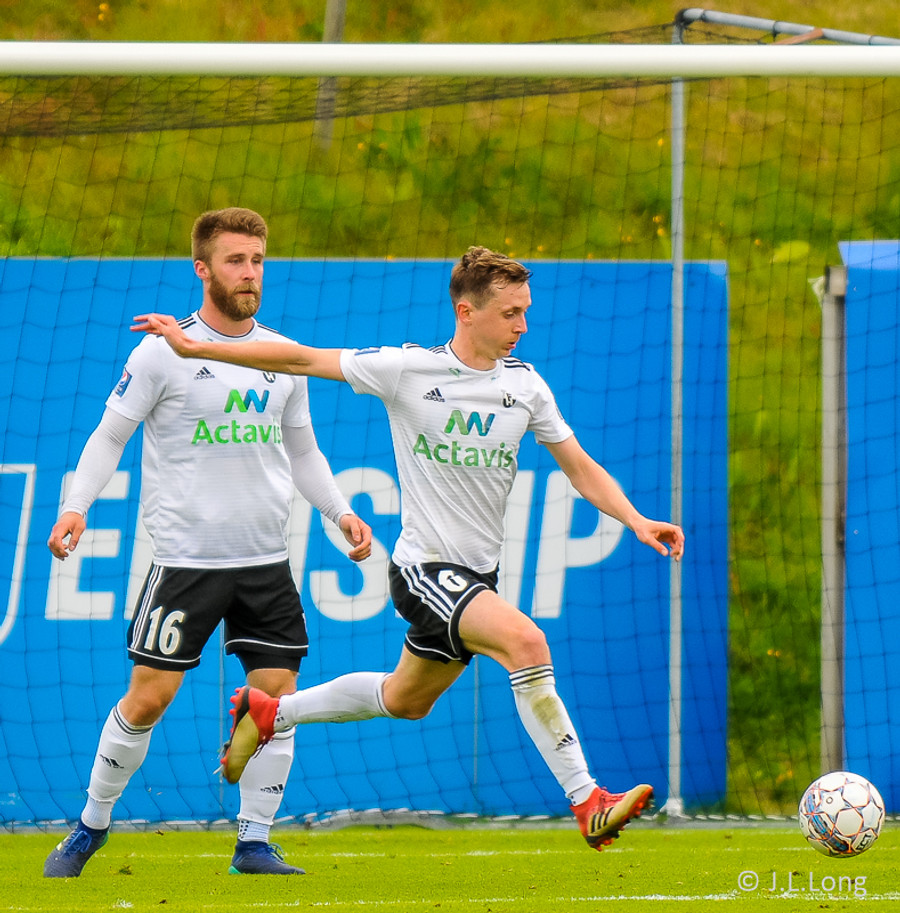 Frábært samspil hjá Lennon og Hjartar Loga sem gaf hælspyrnu á Steven Lennon sem skyndilega var kominn í gott færi.