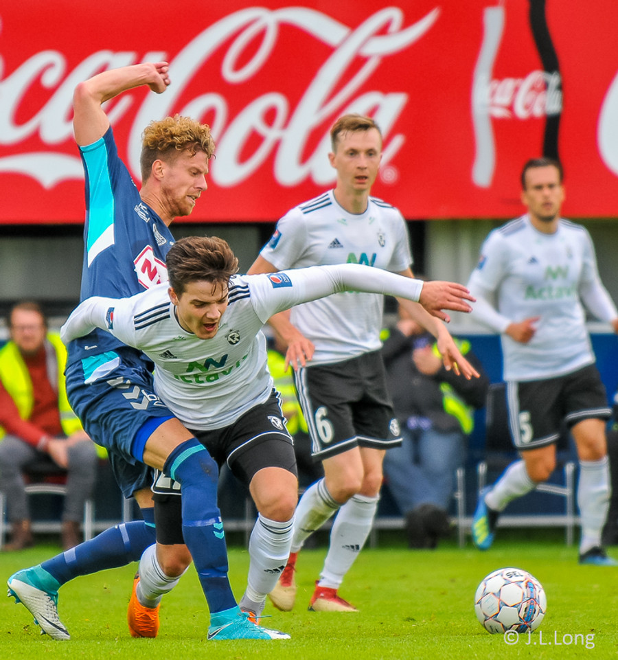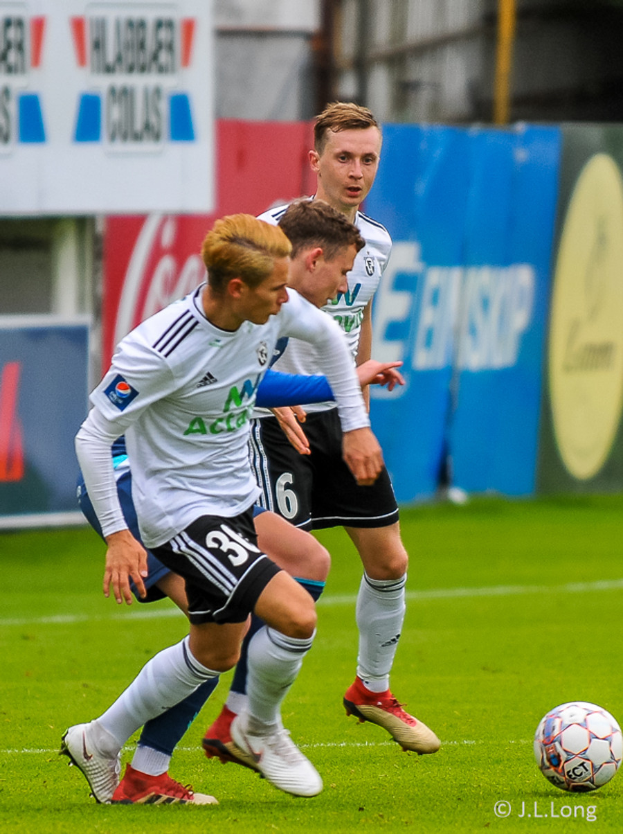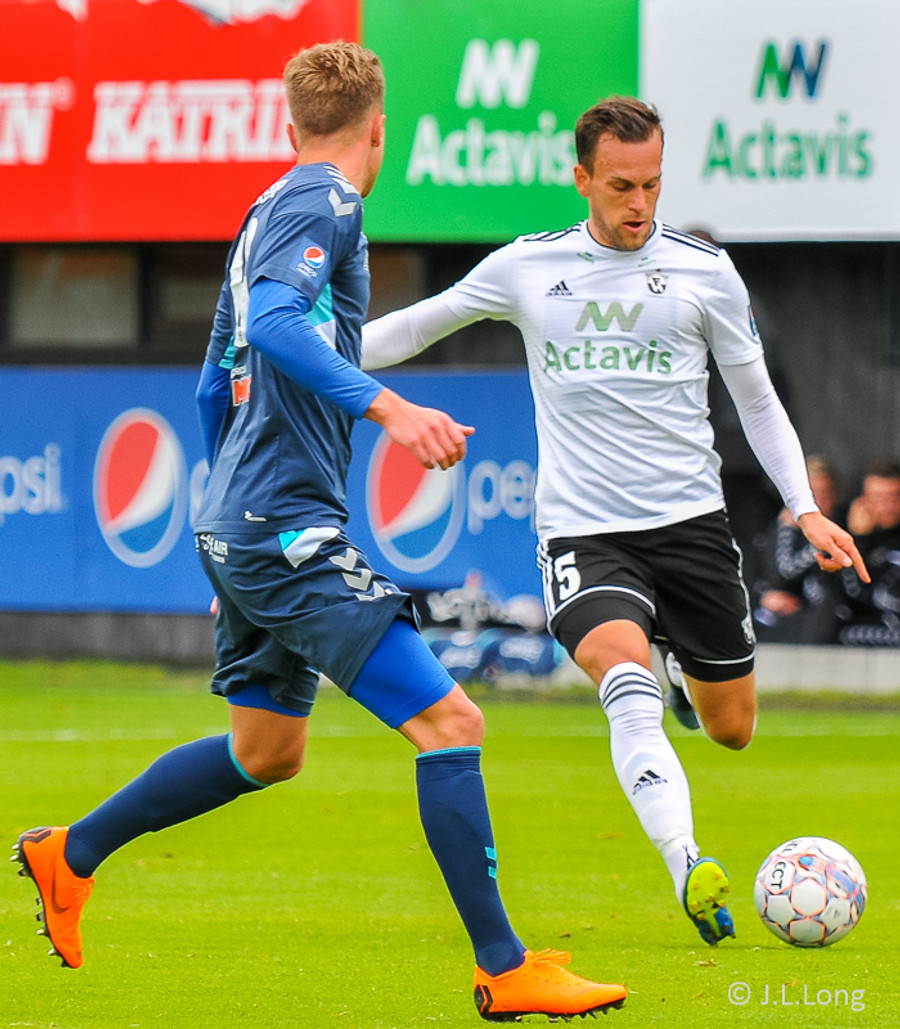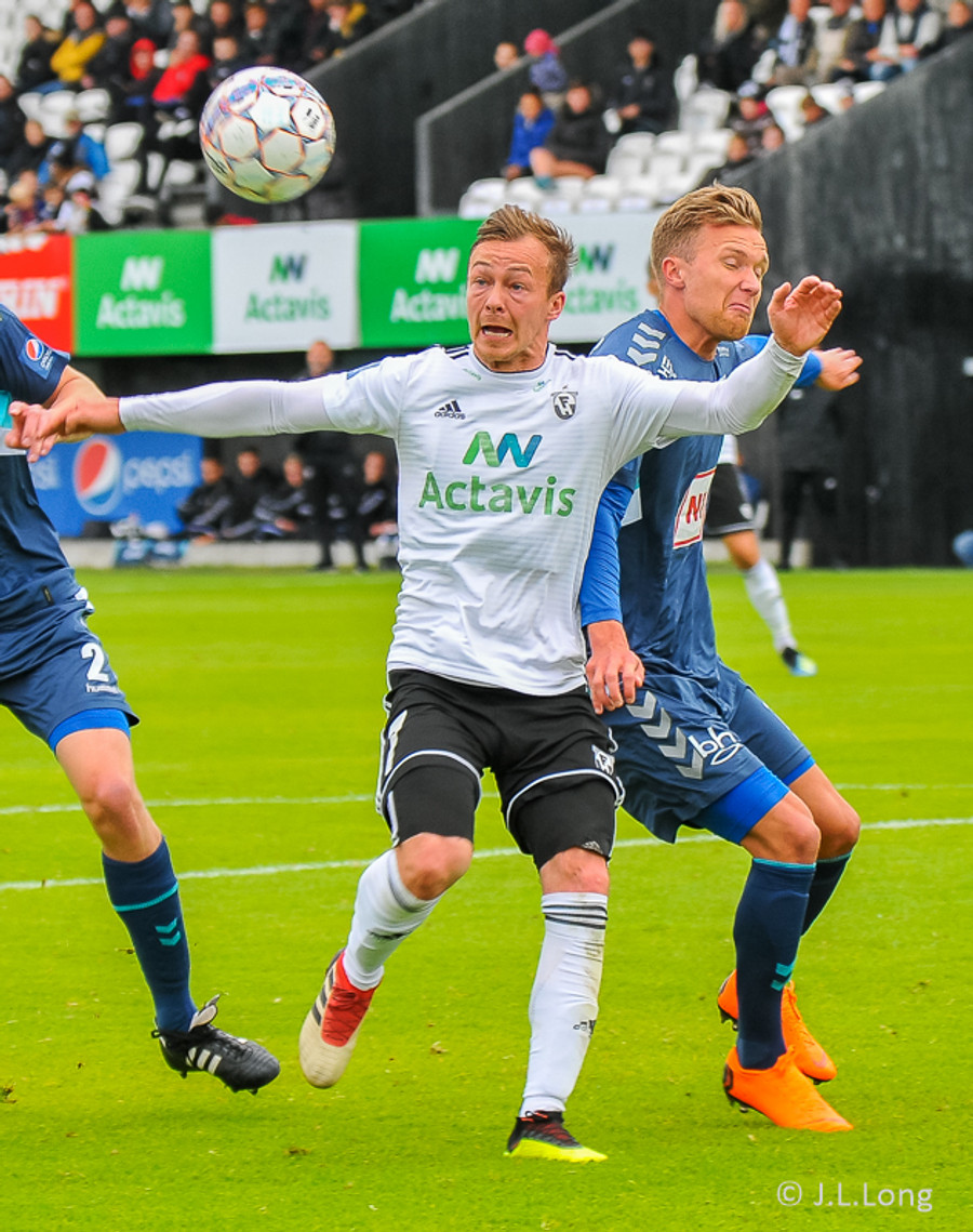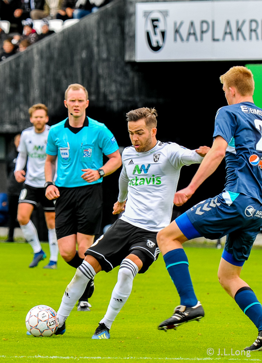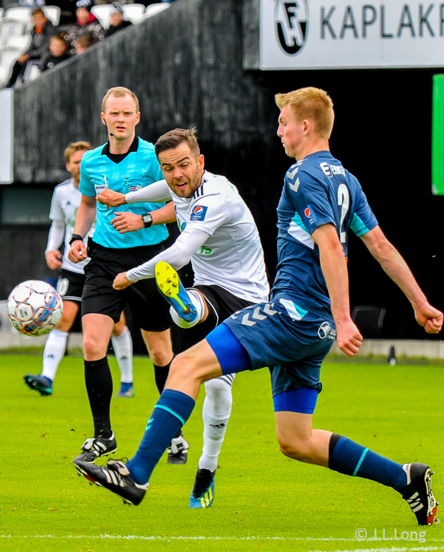 Kaj Leo lætur landa sinn í marki FH, þurfa skutla sér og hafa fyrir skoti utan af velli.