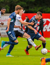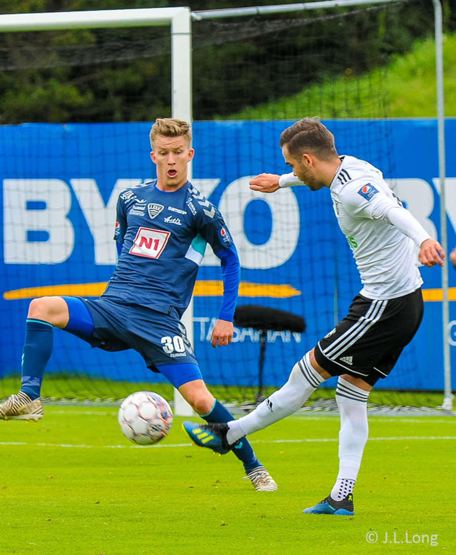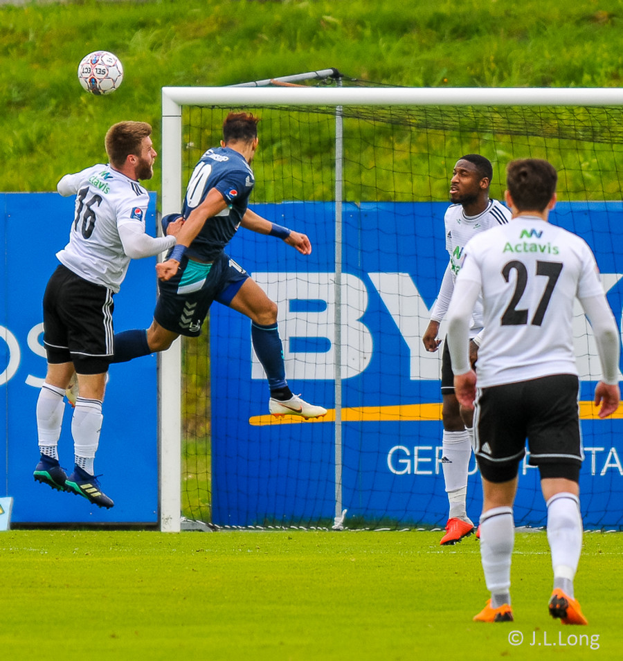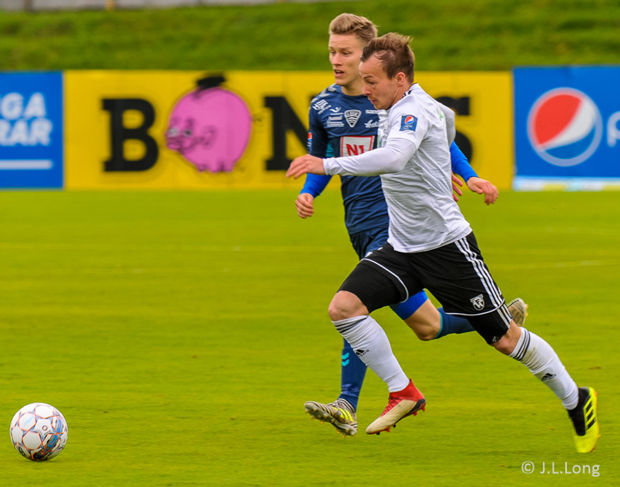 Gunnar Heiðar reynir að finna Sindra Snæ inn í teig, en Sindri Snær ákveður að láta boltann fara með þá hugsun að Jonathan Franks kæmi á hlaupinu fyrir aftan hann, en Franks var of langt í burtu og því rann sóknin út í sandinn.