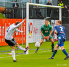 Robbie Crawford með sendingu inn í teig á Steven Lennon sem reynir að taka boltann niður en á mislukkaða fyrstu snertingu og boltinn aftur fyrir.