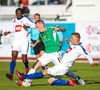 Blikar í sókn og sending á Mikkelsen sem er alveg við endalínuna, Fran Marmolejo markvörður Ólsara fer úr marki sínu og lendir í samstuði við þann danska.