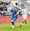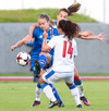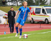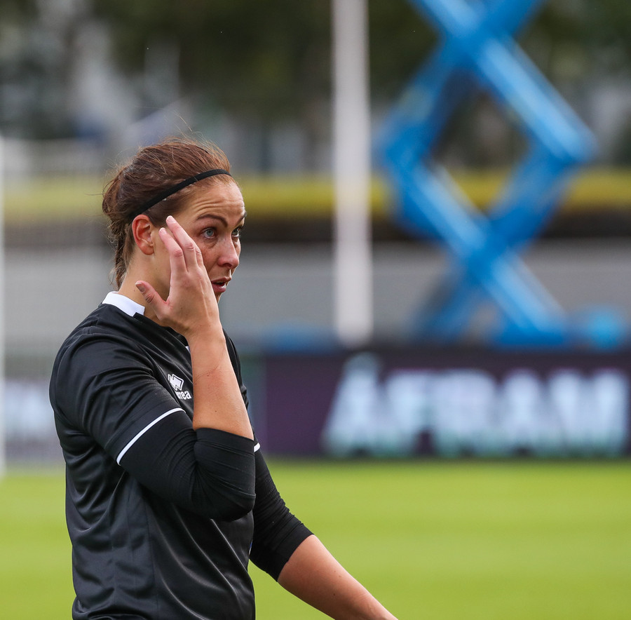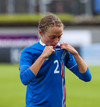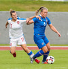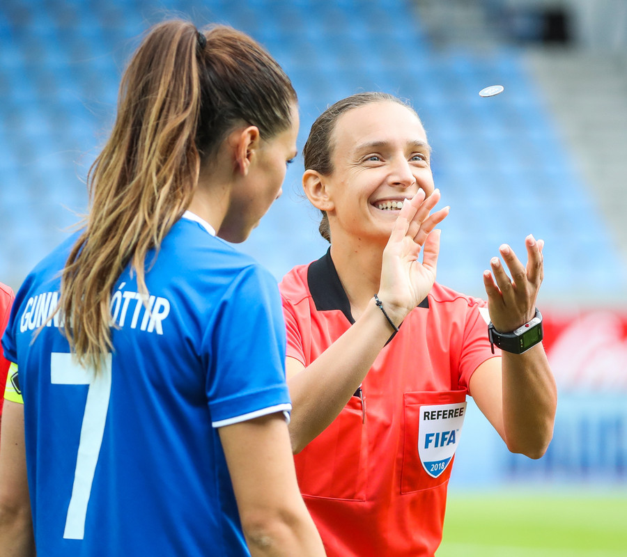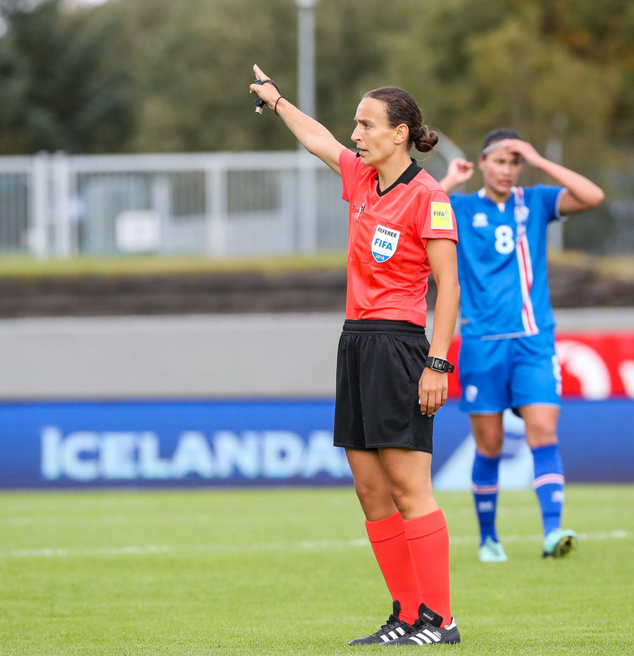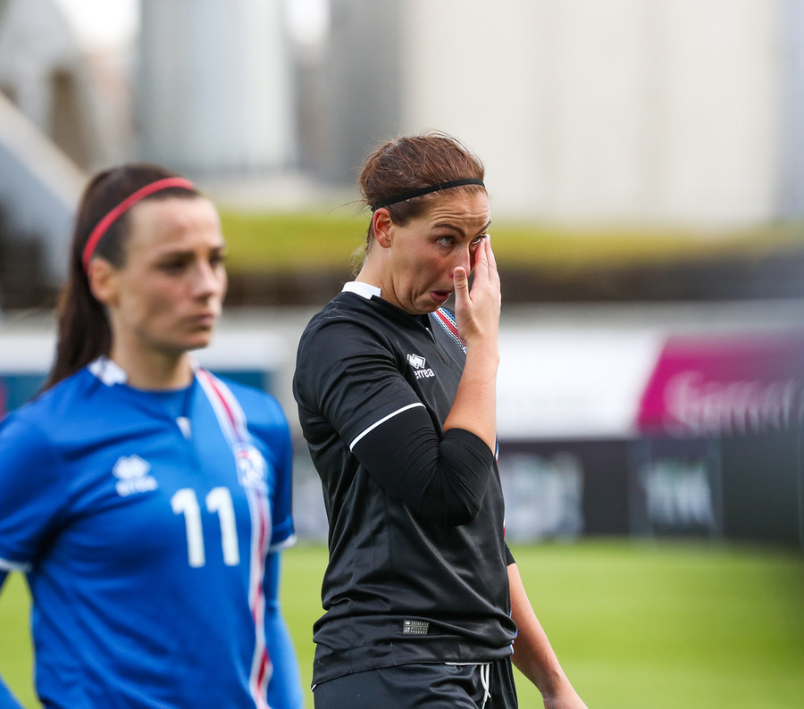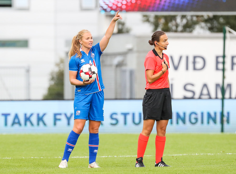 Buzkova fær gult fyrir brot á Elínu á vallarhelmingi Íslands
