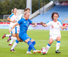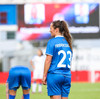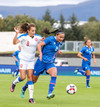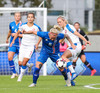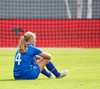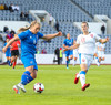 Vel gert Glódís. Dubcóva bjartsýn og lallar með boltann í átt að teignum. Glódís tekur boltann bara af henni. Íslensku stelpurnar koma þessu í spil en enn og aftur erum við svoldið óþolinmóðar og þessi endar bara í háloftabolta fram völlinn