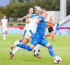 Vel spilað. Glódís út til vinstri á Hallberu. Hallbera upp til vinstri á Fanndísi. Hún ákveður að keyra inn á völlinn og í átt að marki! Nær ekki skotinu því þær koma þrjár á hana! Þær koma þessu í burtu!
