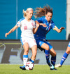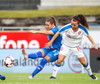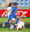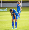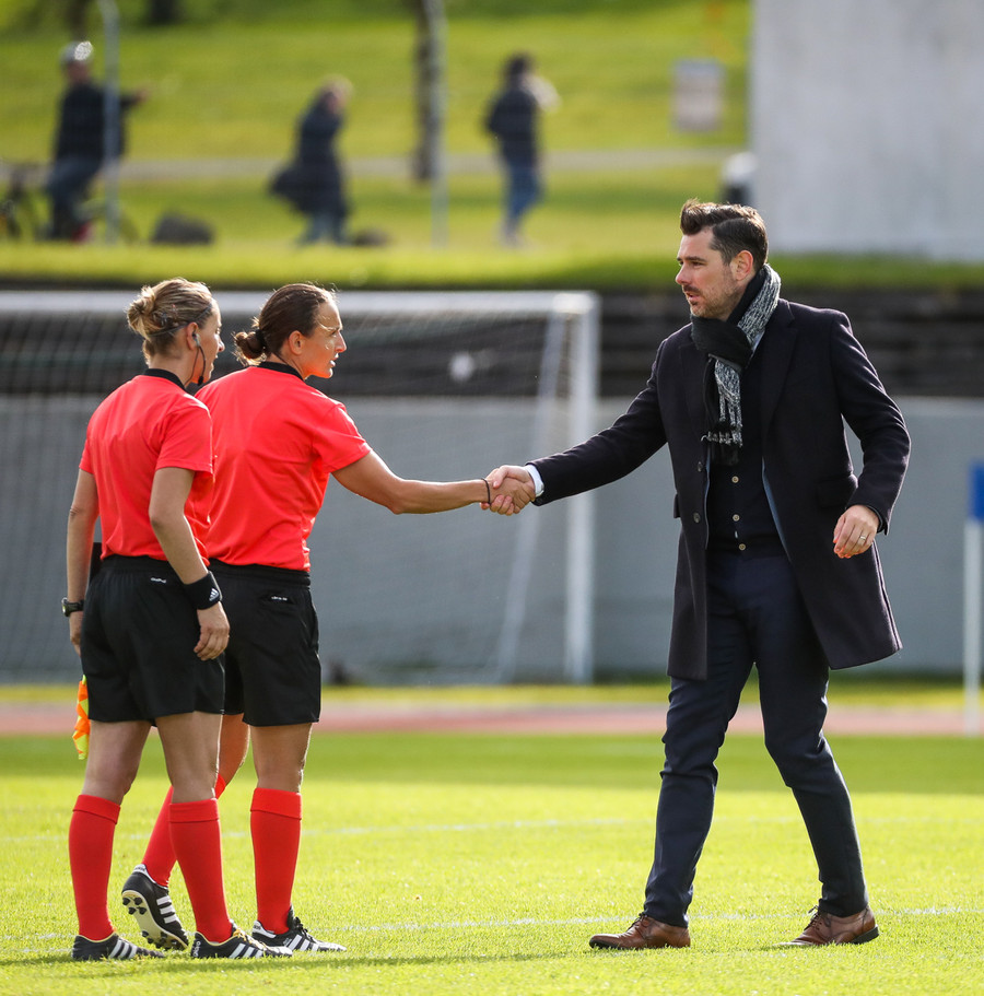 Þetta er ekki hægt! Sif er að reyna að taka aukaspyrnu og enn og aftur standa þær fyrir boltanum. Úff þær eru þreytandi, ekkert hægt að fegra það