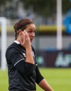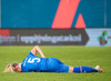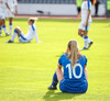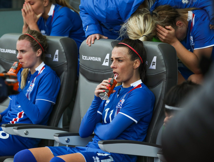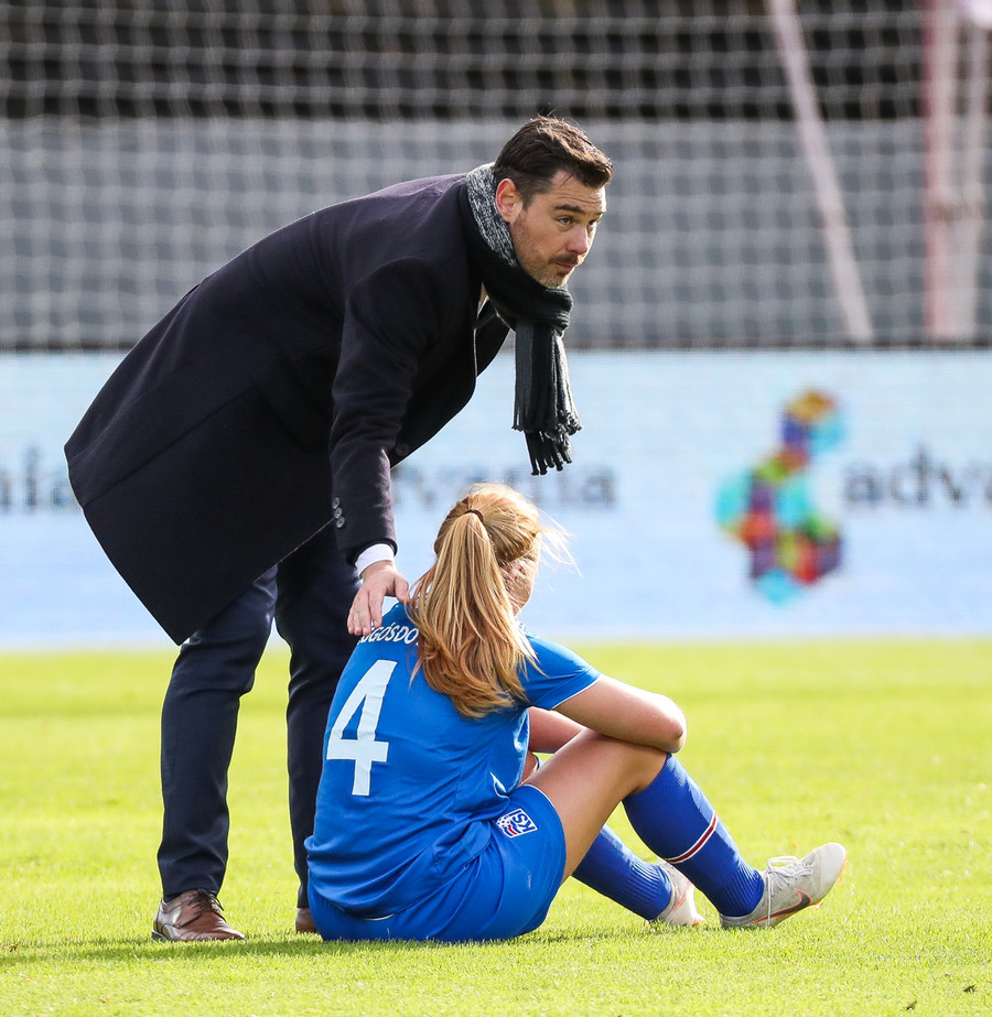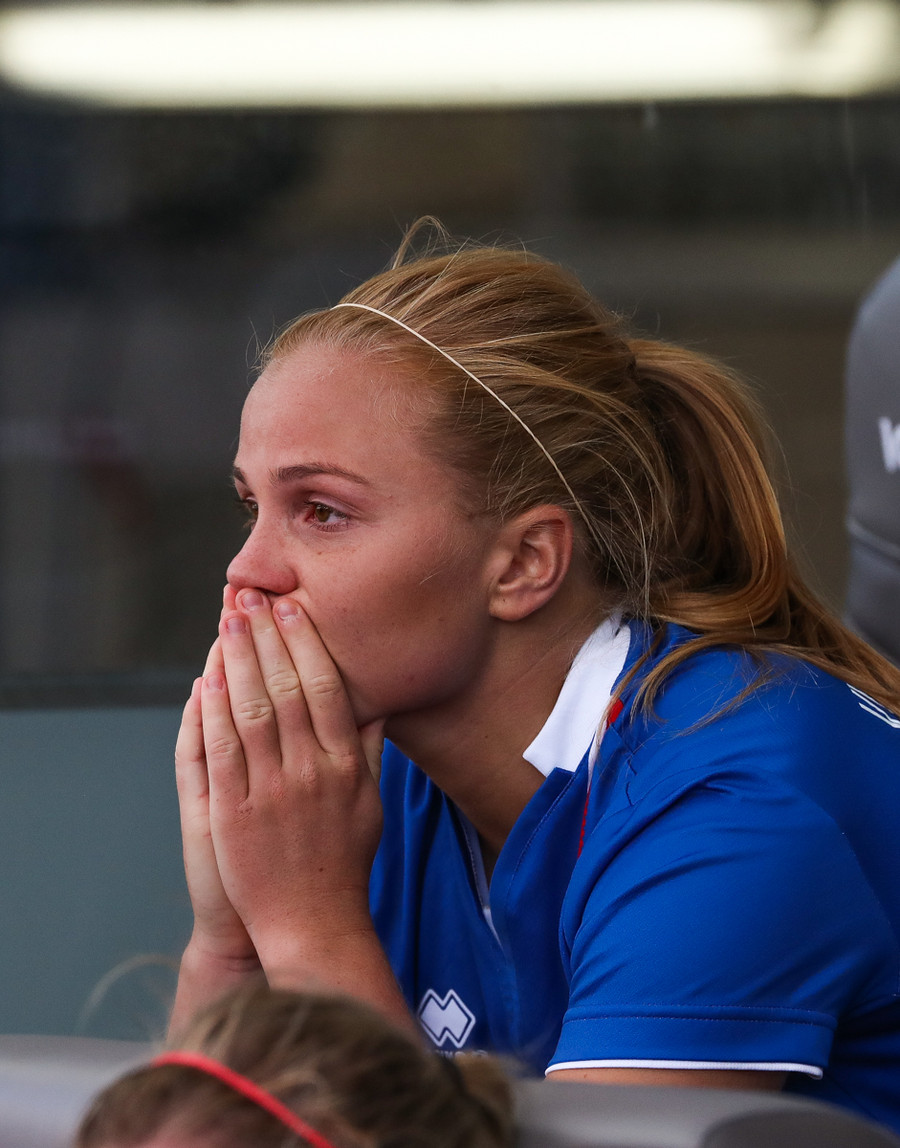 Bartonova situr inn í eigin vítateig og neitar að standa upp. Þær eru byrjaðar að tefja og það eru komnar 17 mínútur á klukkuna.