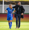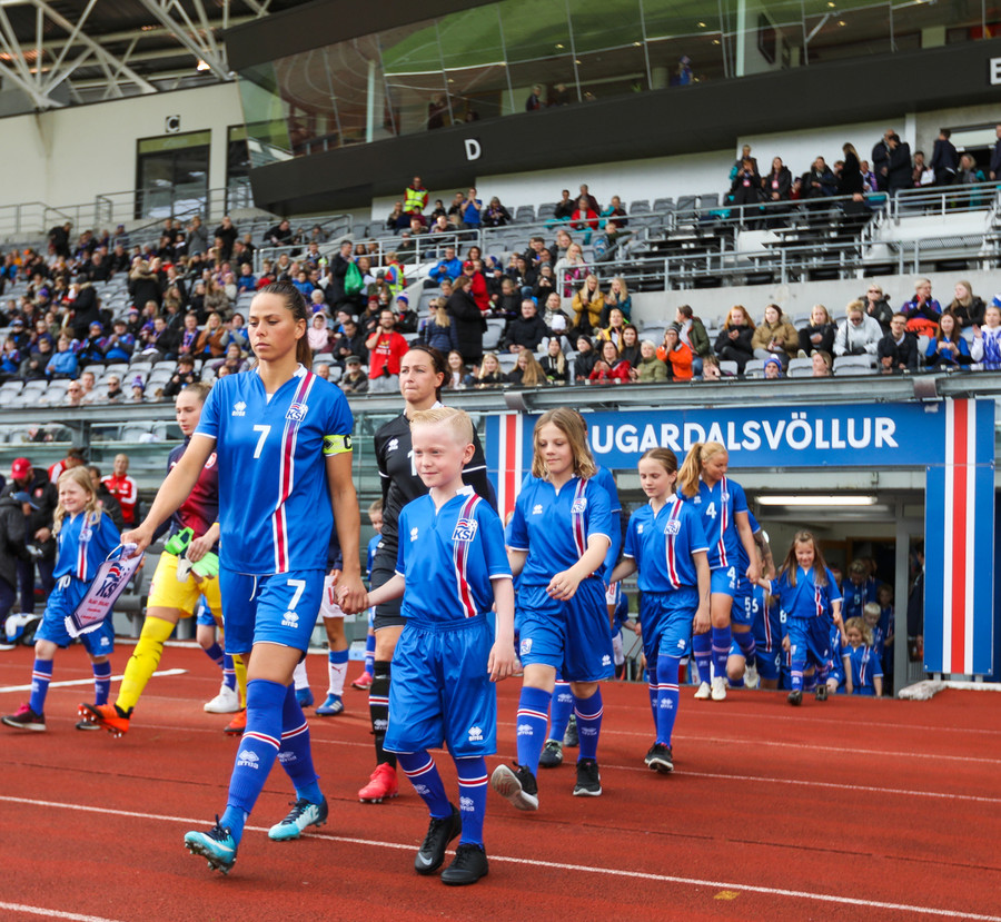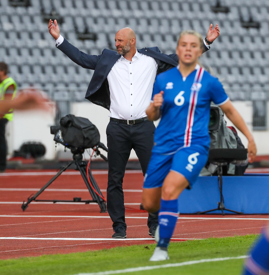 Ísland byrjar þetta af krafti og pressar hátt á völlinn. Okkur vantar mark í þennan leik og ætlum við reynum ekki að ná því sem fyrst!