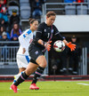 Agla María keyrir upp hægra megin. Nóg af plássi til að skipta honum yfir til vinstri. Hún bíður hinsvegar eftir utan á hlaupinu sem kemur á endanum frá Ingibjörgu. Sendingin frá Öglu er ónákvæm og við vinnum innkast