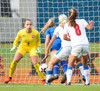 Mark uppúr engu!! Marínkóva með fyrirgjöf og tvær tékkneskar fríar inn á teig! Og Szewieczkova með skallann. Guðbjörg virðist verja þetta en missir hann inn!