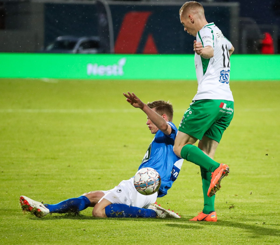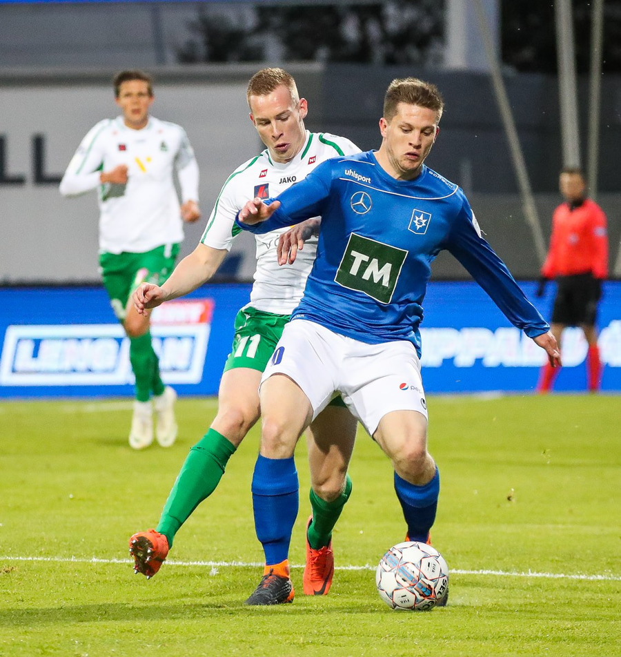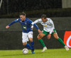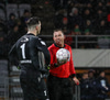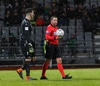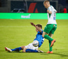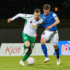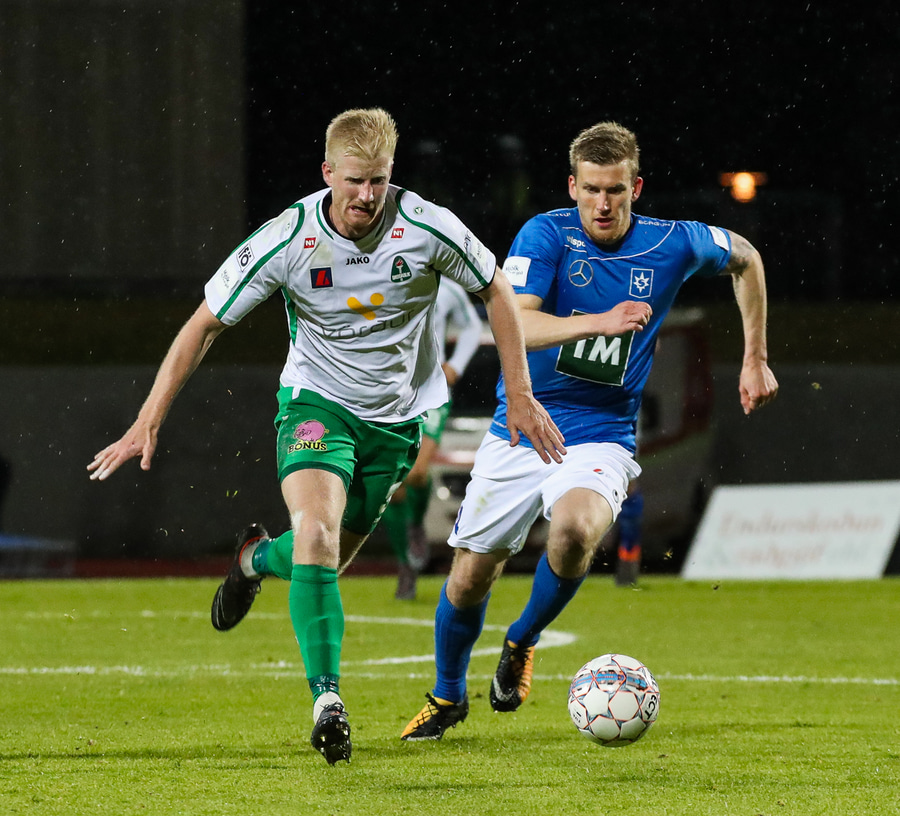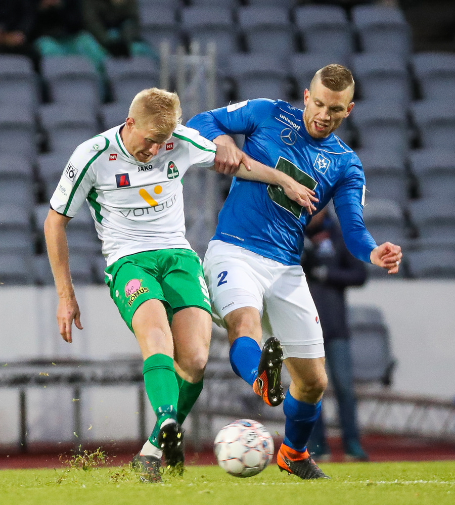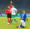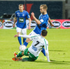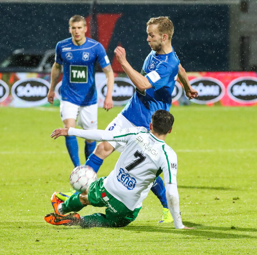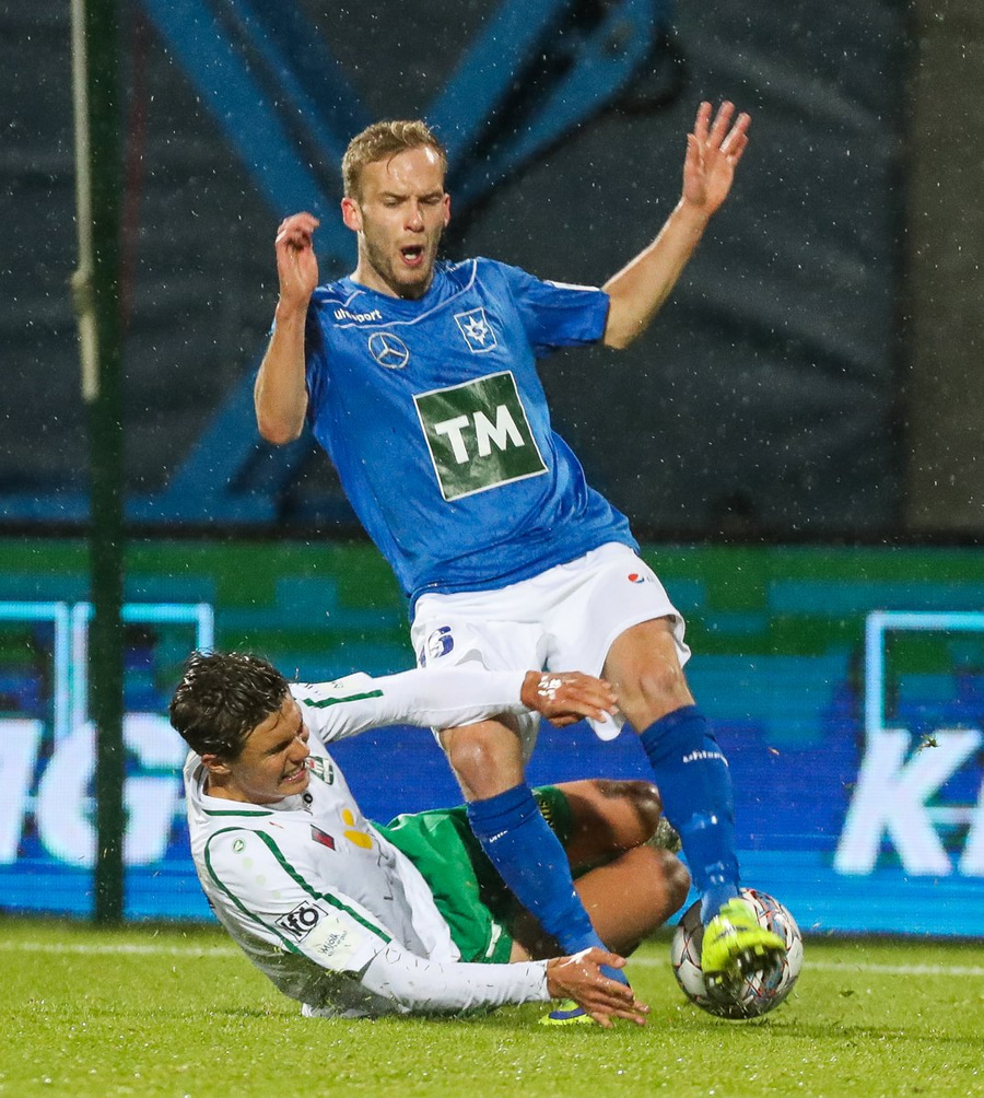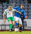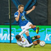Alex straujar hér Gísla á miðjum vellinum, full harkaleg tækling en sleppur við spjald.