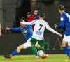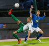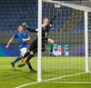 Oliver með aukaspyrnu yfir vegginn en rétt framhjá markinu, alls ekki galin tilraun.