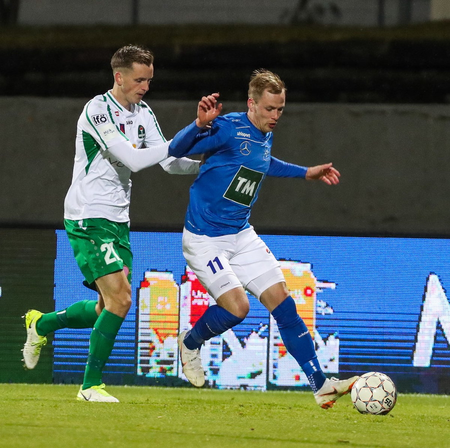 Gísli við það að komast í boltann hérna inn í teig á undan Halla en Halli var eins og köttur, þvílíkur hraði og réðst á boltann!