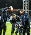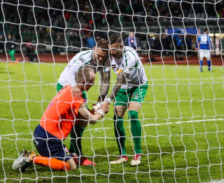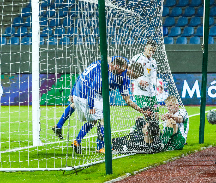 Vá Halli sleppur með skrekkinn, fyrirgjöf frá Gísla sem Halli ætlar að kýla en hittir ekki boltann. Þaðan fer boltinn til Davíðs sem skýtur en Jói Lax hendir sér fyrir skotið.
