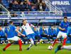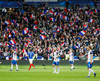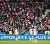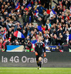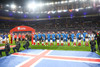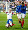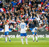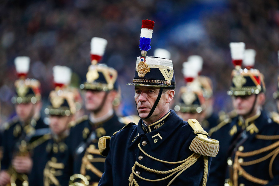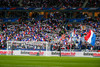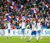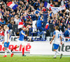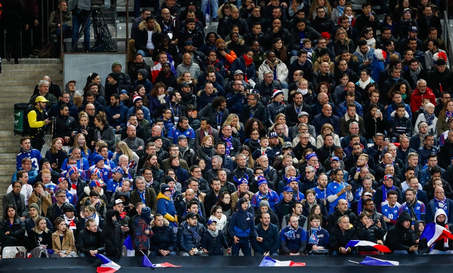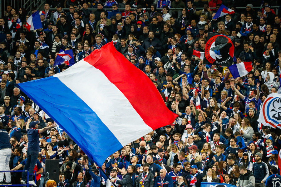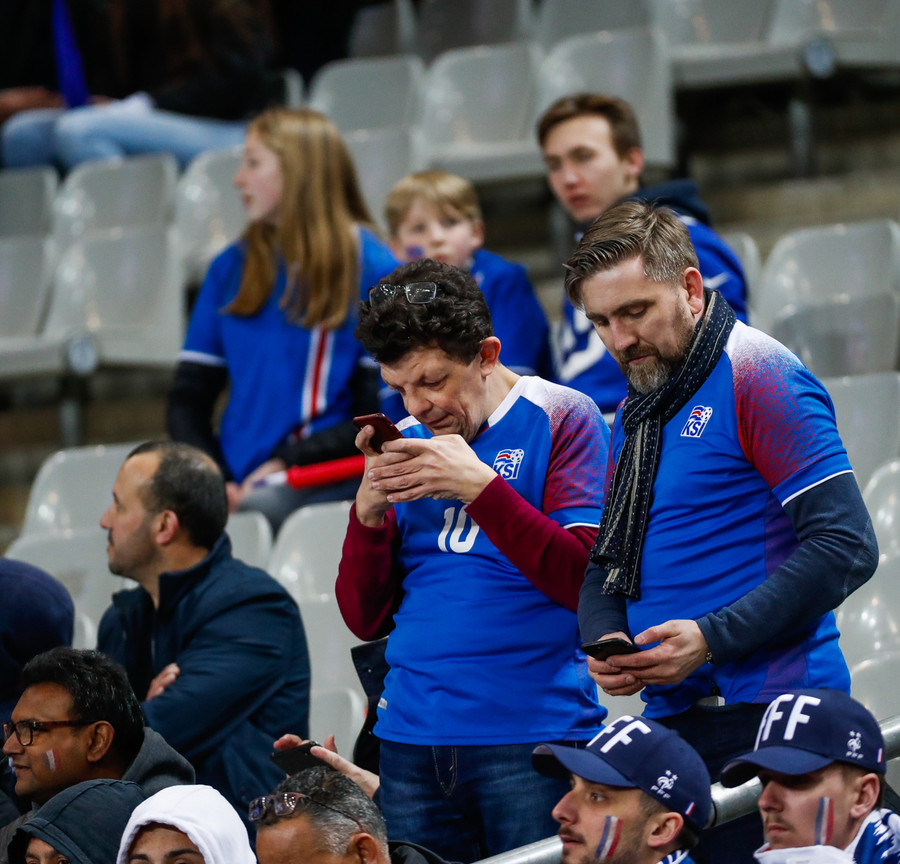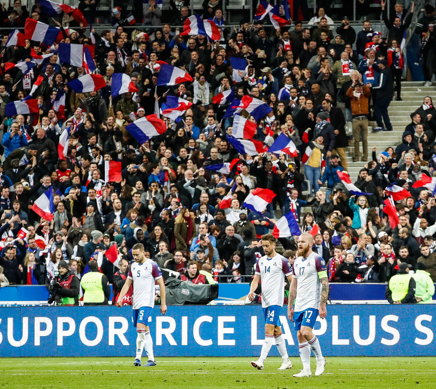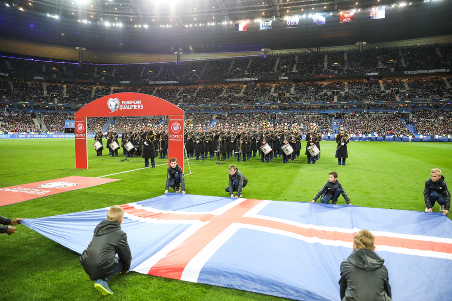 Frakkarnir bjóða upp á dínamíska lúðrasveit og stuð. Það er verið að halda upp á 100 ára afmæli franska knattspyrnusambandsins og af því tilefni eru Frakkarnir í sérstökum afmælistreyjum sem aðeins verða notaðar í leiknum í kvöld. Á risaskjám vallarins eru rifjaðar upp eftirminnilegar stundir.