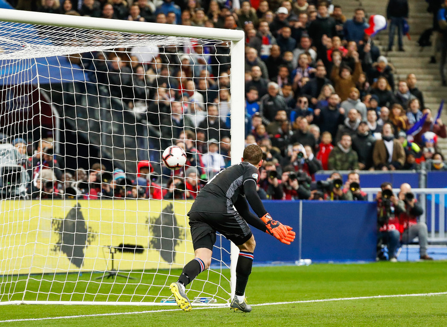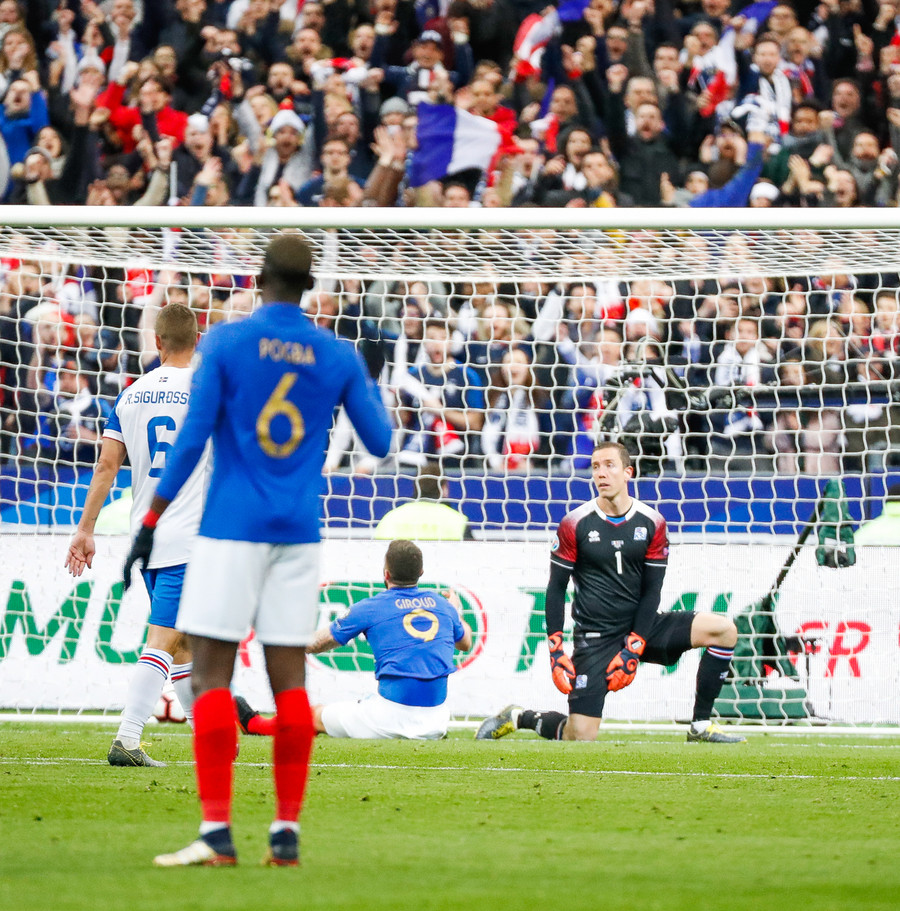 Þrátt fyrir yfirburðina var þetta fyrsta alvöru marktækifæri Frakka.