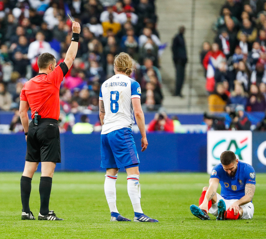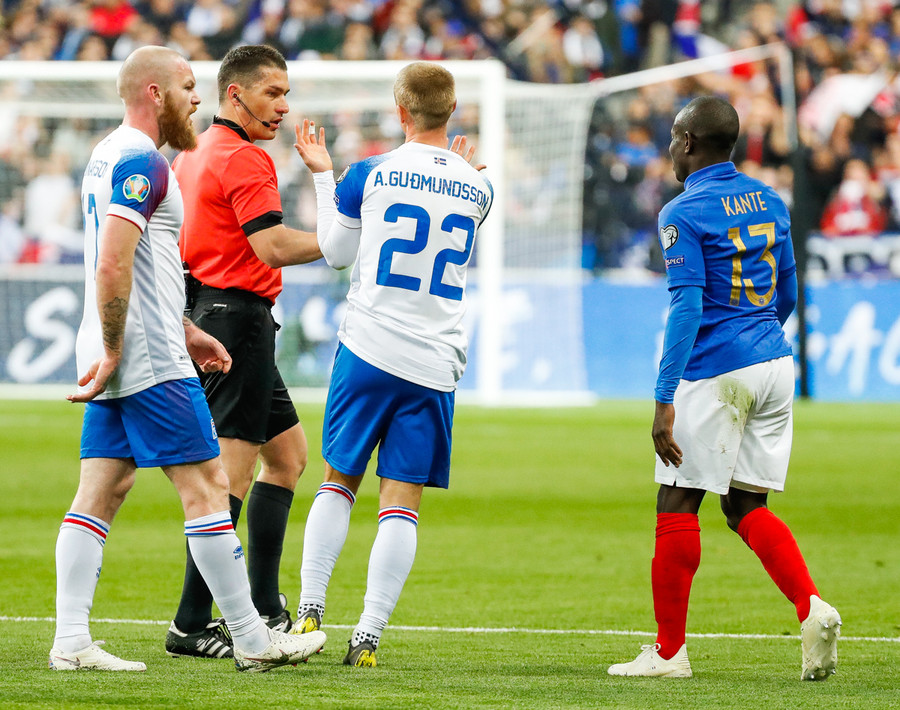 Það er furðulegur fjandi hvað Kante er að sleppa lengi með þetta gula spjald. Dómarinn eitthvað hræddur við heimavöll Frakka? #fotboltinet