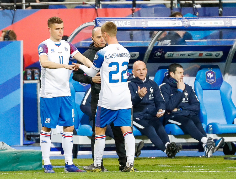 Út: Ari Freyr Skúlason, Jóhann Berg Guðmundsson (meiddur), Arnór Sigurðsson og Alfreð Finnbogason.