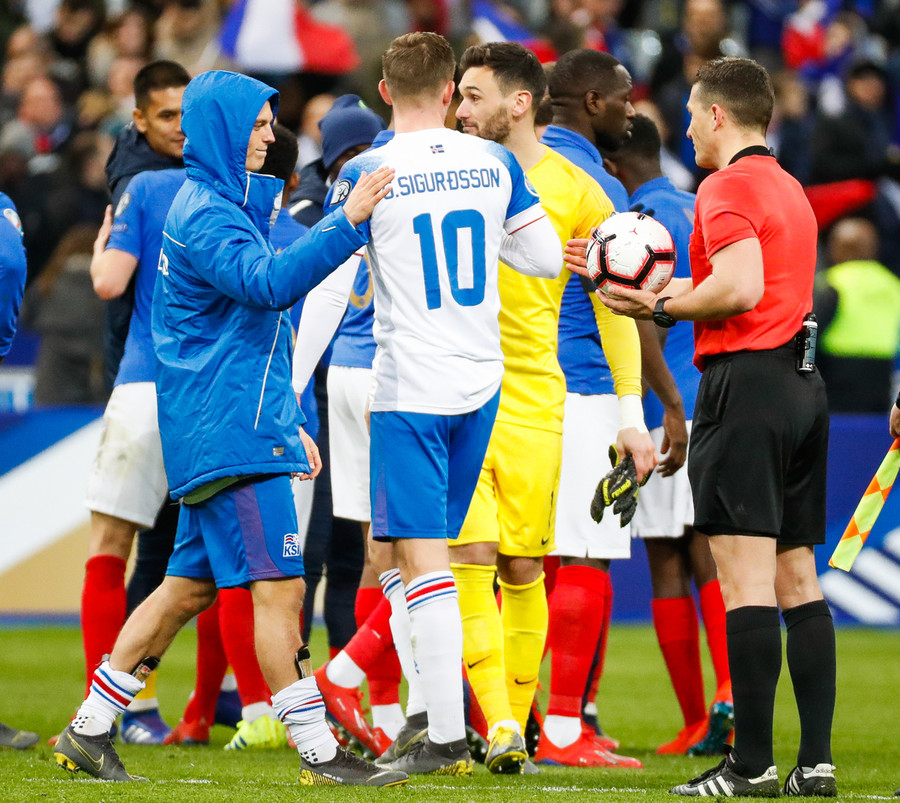 Ég hlakka til leiksins, það er stórt að spila við heimsmeistarana en spennandi staða fyrir okkur. Ég á von á erfiðum leik en þetta verður mikil áskorun. Auðvitað getum við nýtt margt úr þeim leik (2-2 jafnteflinu í október), við getum alltaf nýtt hluti úr leikjum hvort sem við vinnum eða töpum. Þetta verður ný áskorun þó sumt sé eins. Þetta eru áfram Frakkar en þetta er keppnisleikur sem er alltaf öðruvísi en æfingaleikur.