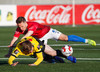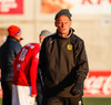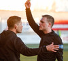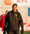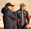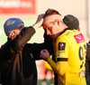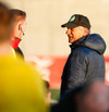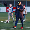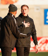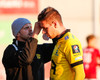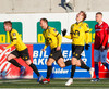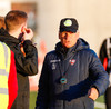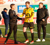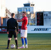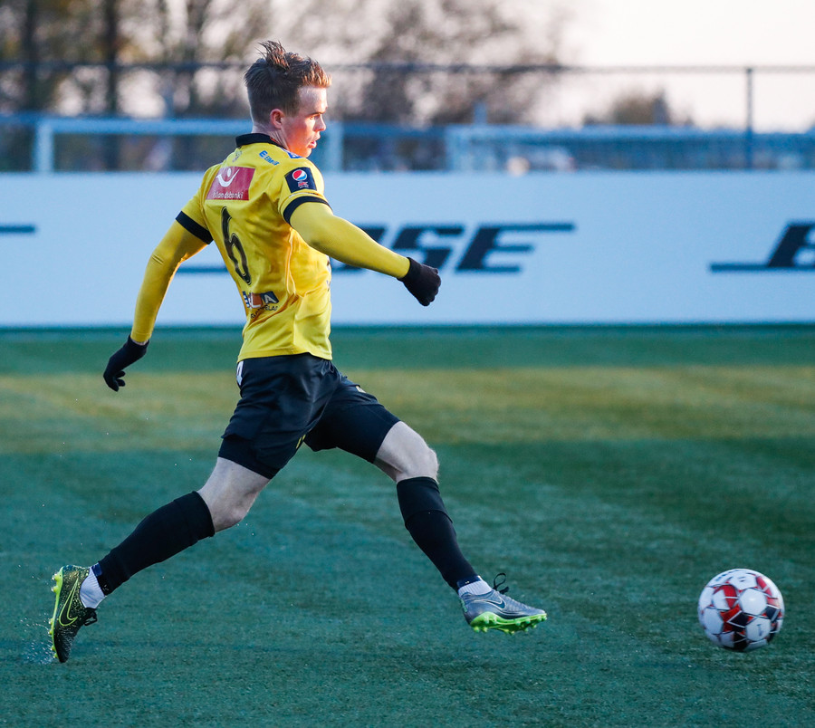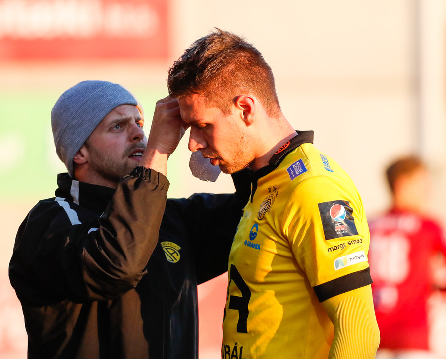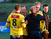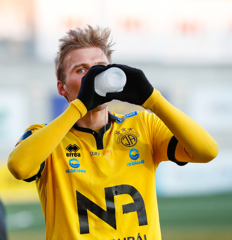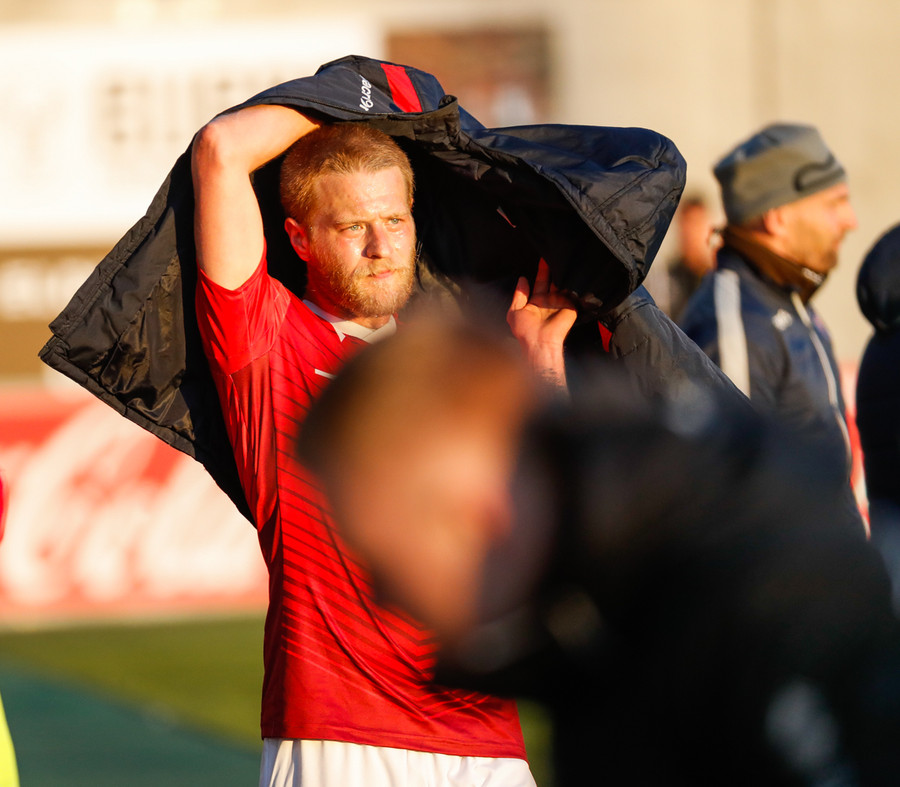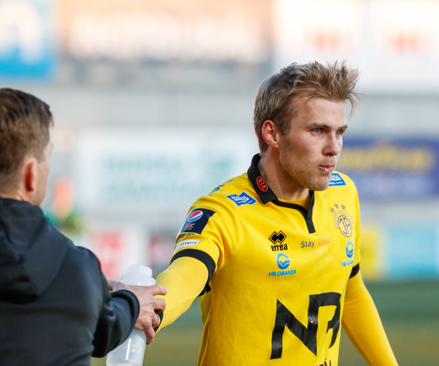 Lyng meiddist aftan í læri í skotinu og þarf að fá skiptingu. Kaj Leo býr sig undir að koma inn.