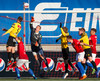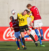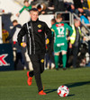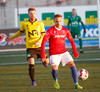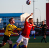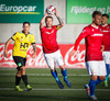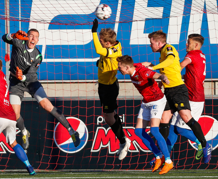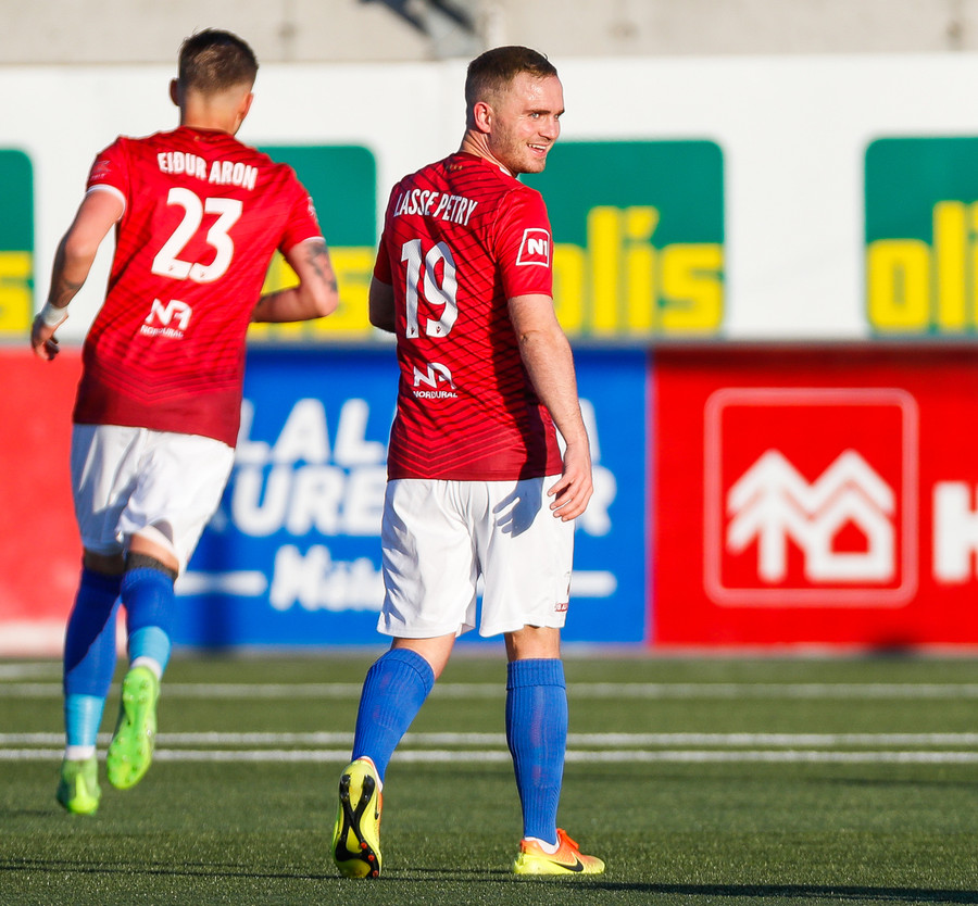 Kaj Leo aleinns í teignum en með ævintýralega lélegan skalla. Yfir. Þetta var rosalega gott færi sem fór forgörðum.
