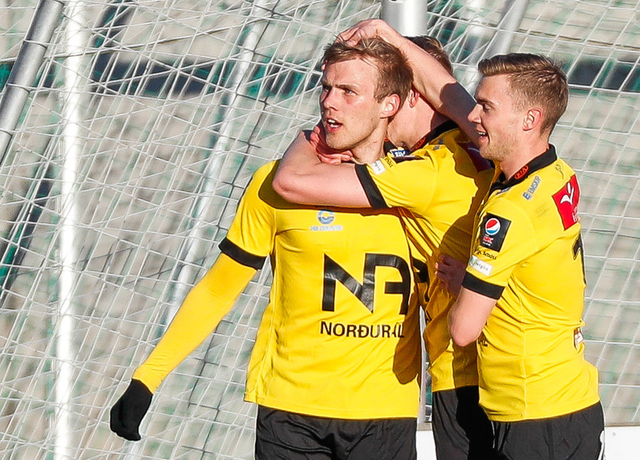 Sýndist þetta vera Arnar Már sem skallaði knöttinn núna inn! Hornspyrnurnar frá Tryggva Hrafni eru að gefa!