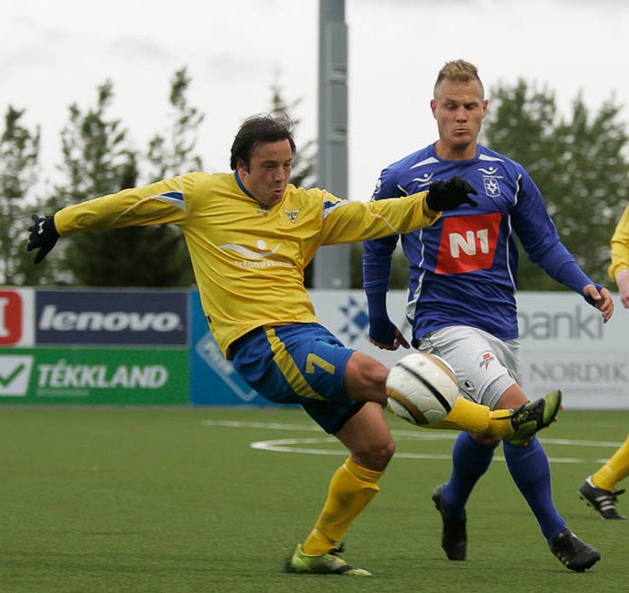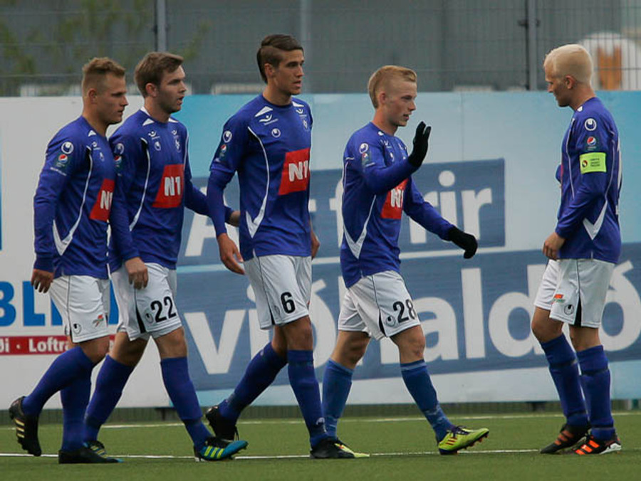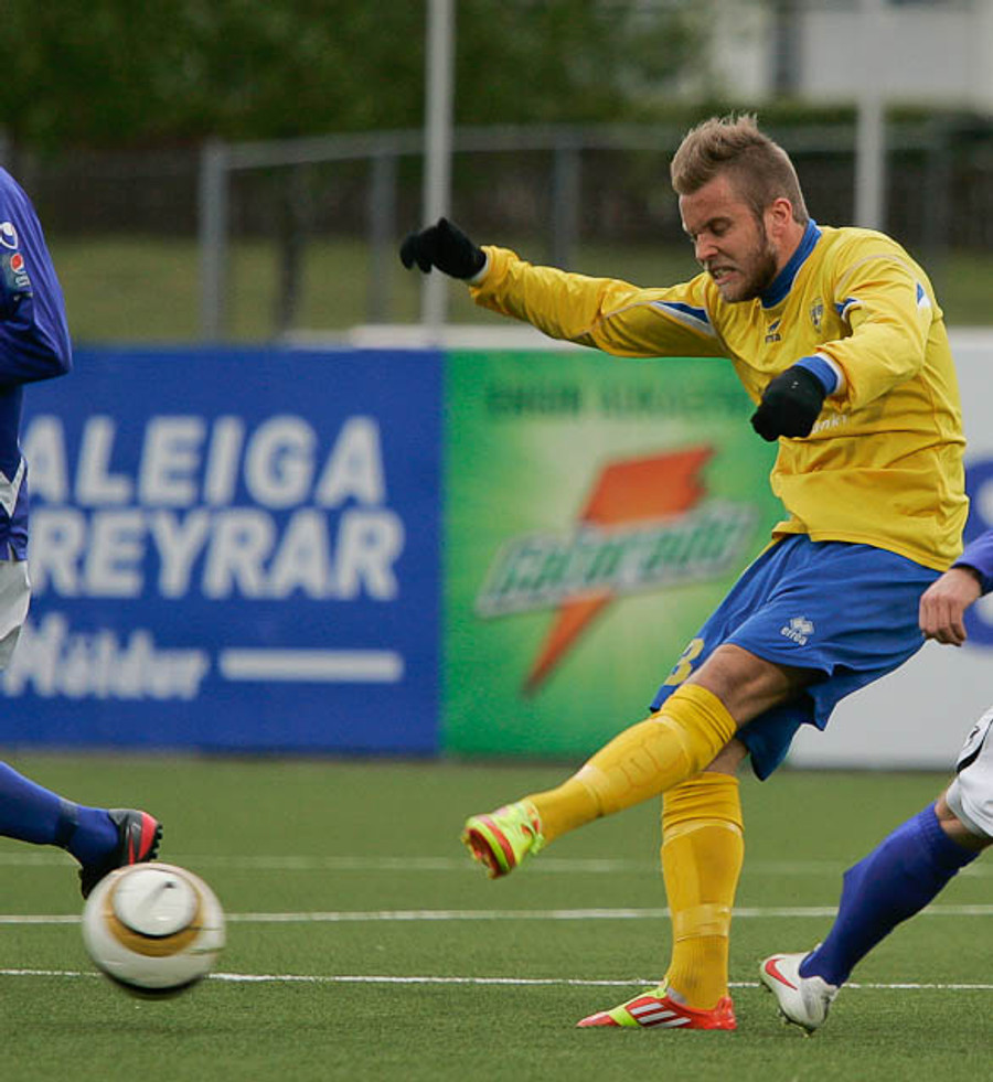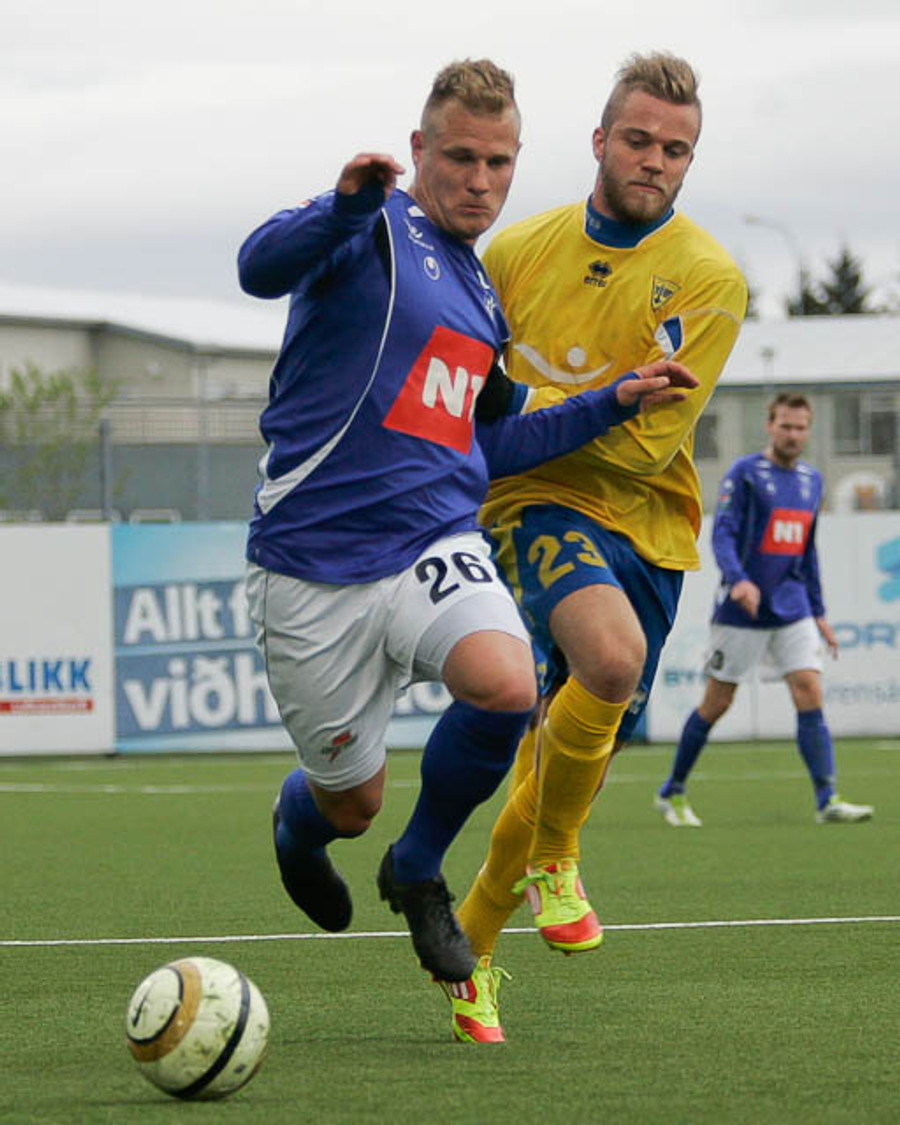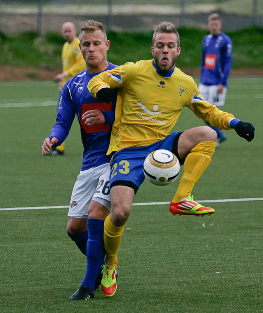 Garðar meiddur aftan í læri. Ellert kemur inná í sínum fyrsta leik í sumar.
