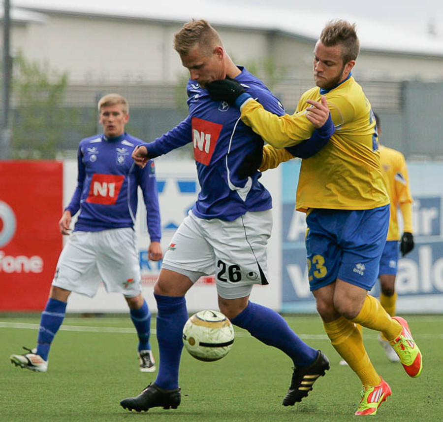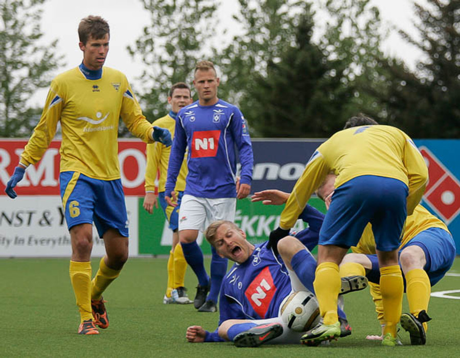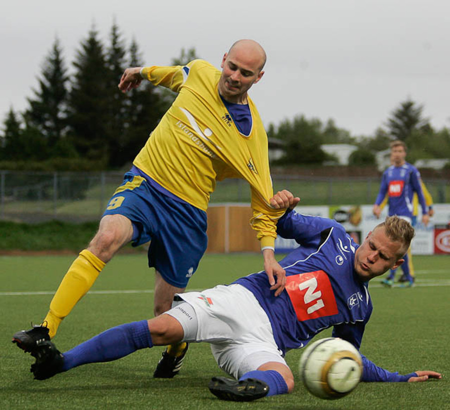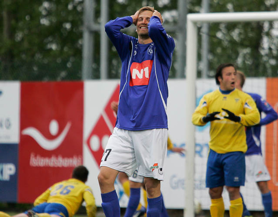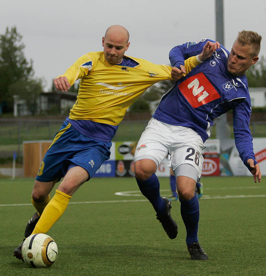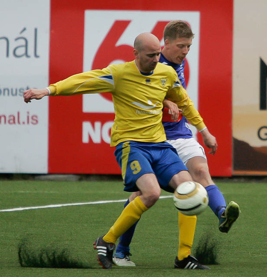 Garðar meiddur aftan í læri. Ellert kemur inná í sínum fyrsta leik í sumar.