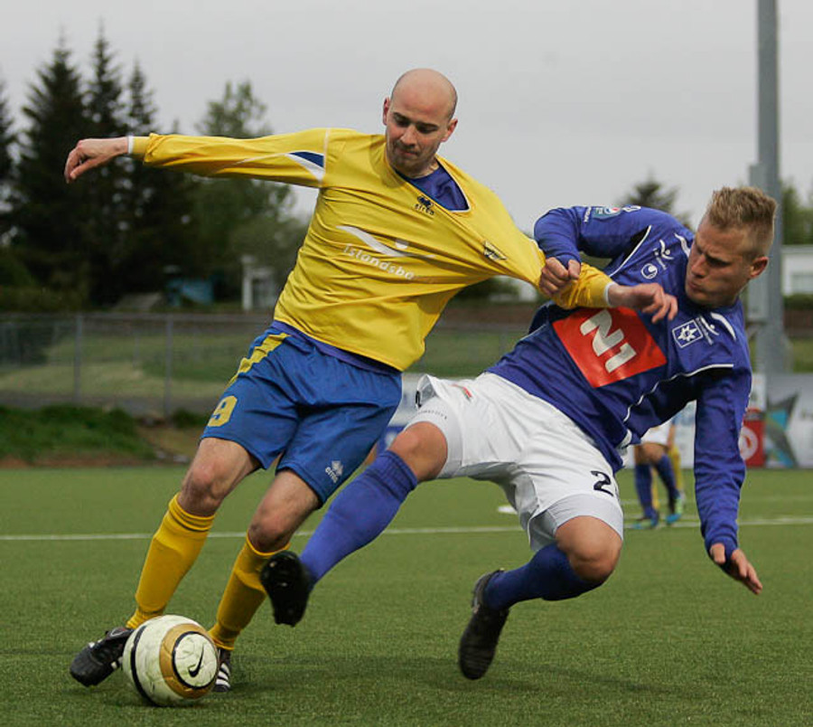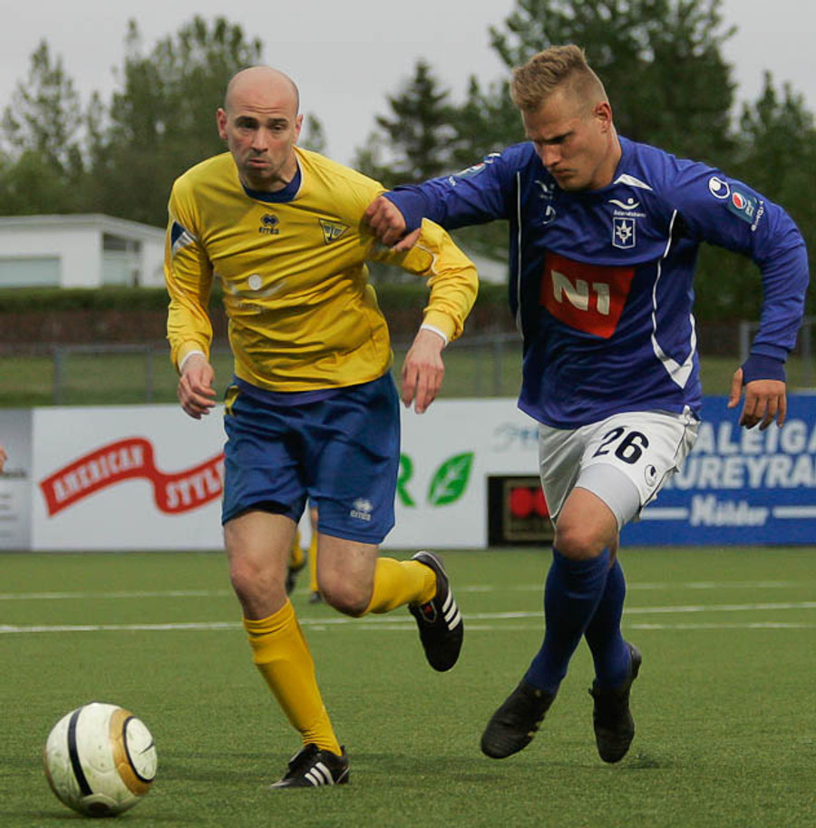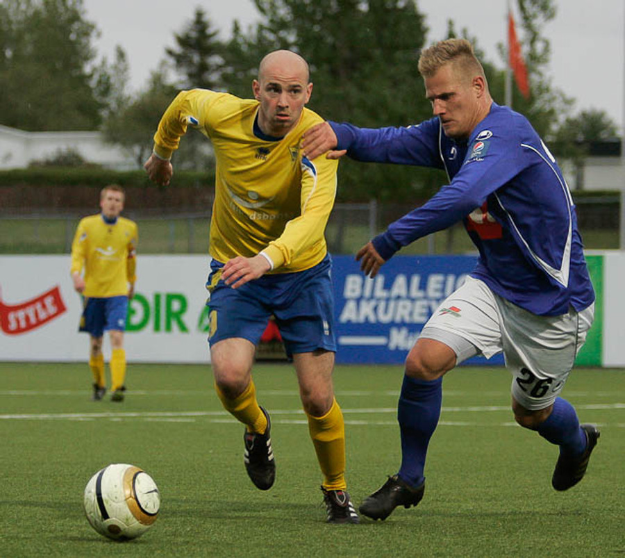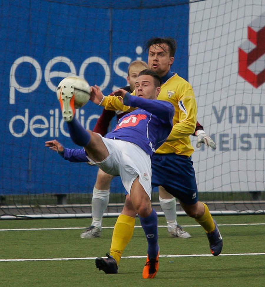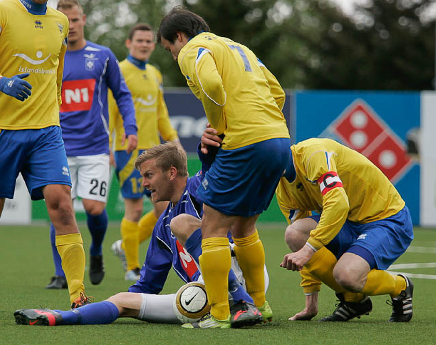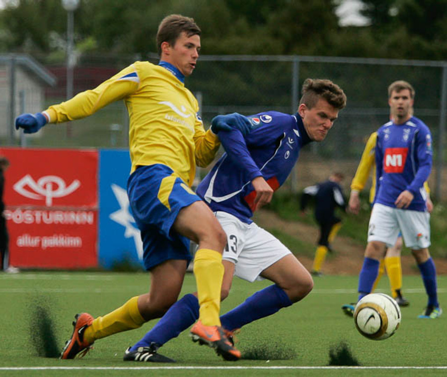 Garðar meiddur aftan í læri. Ellert kemur inná í sínum fyrsta leik í sumar.