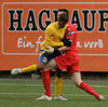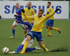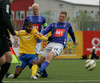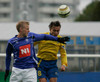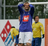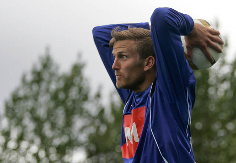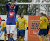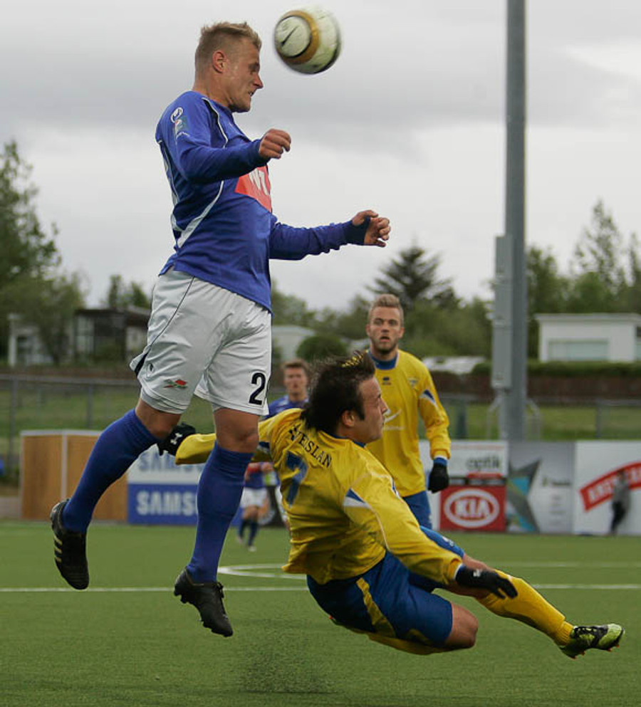 Alexander Scholz með skalla sem fer rétt framhjá. Stjörnumenn sækja nú hart að marki Gróttu.