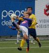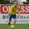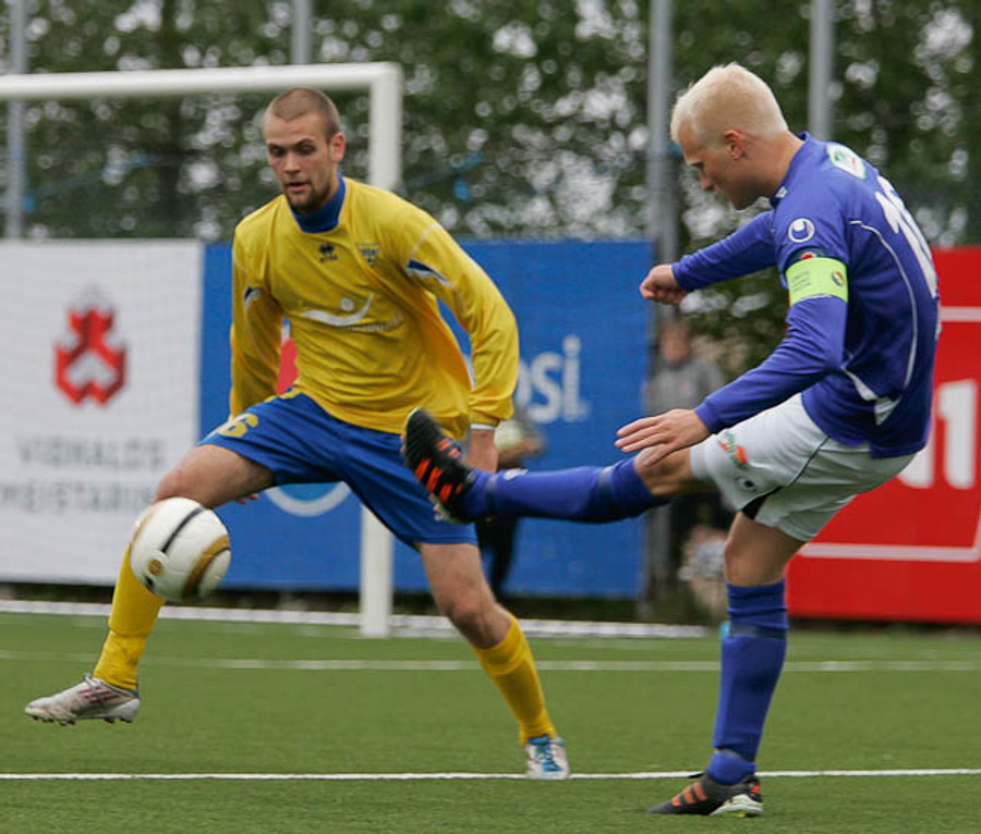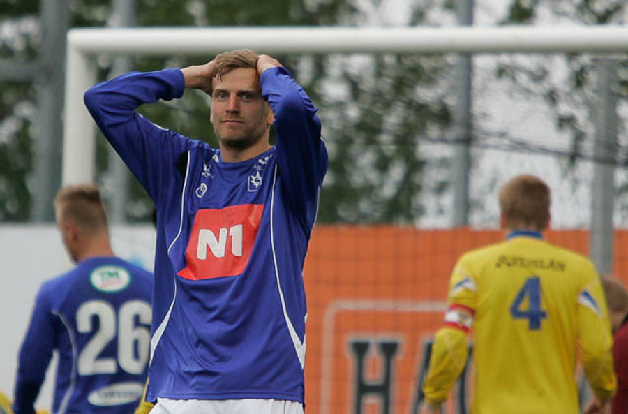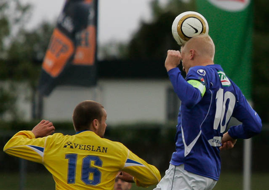 Mads Laudrup með hörkuskot sem fer í varnarmann og í horn. Uppúr horninu gerðist ekkert.