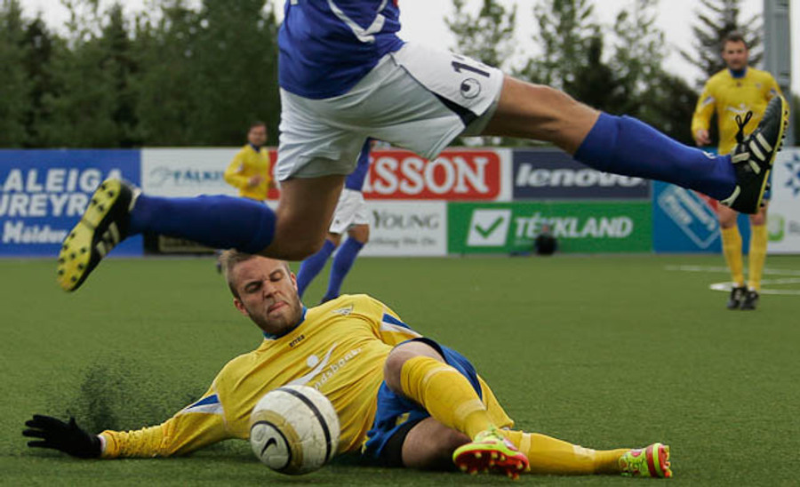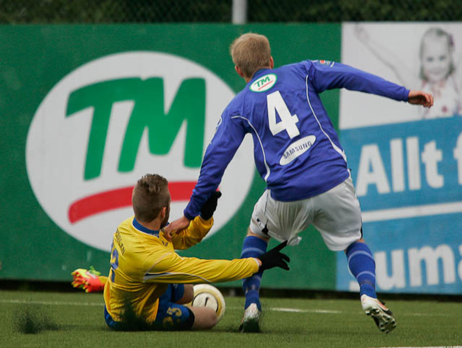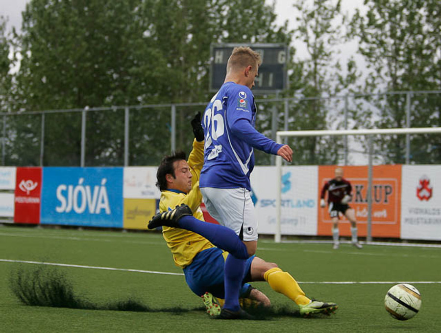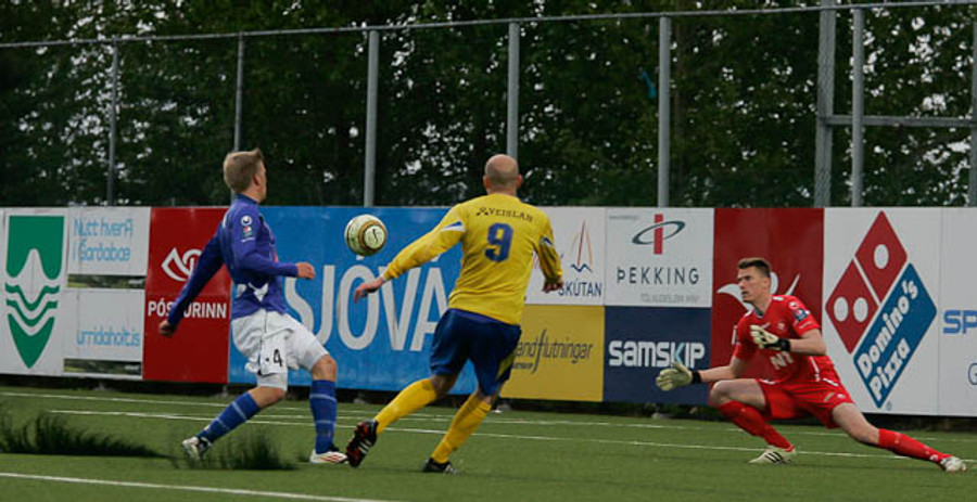 Táningurinn skorar með föstu skoti milli lappa Jón Kolbeins í markinu. Jón Kolbeinn hefði mátt gera betur, en engu að síður vel gert hjá Darra Stein.