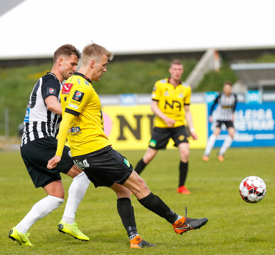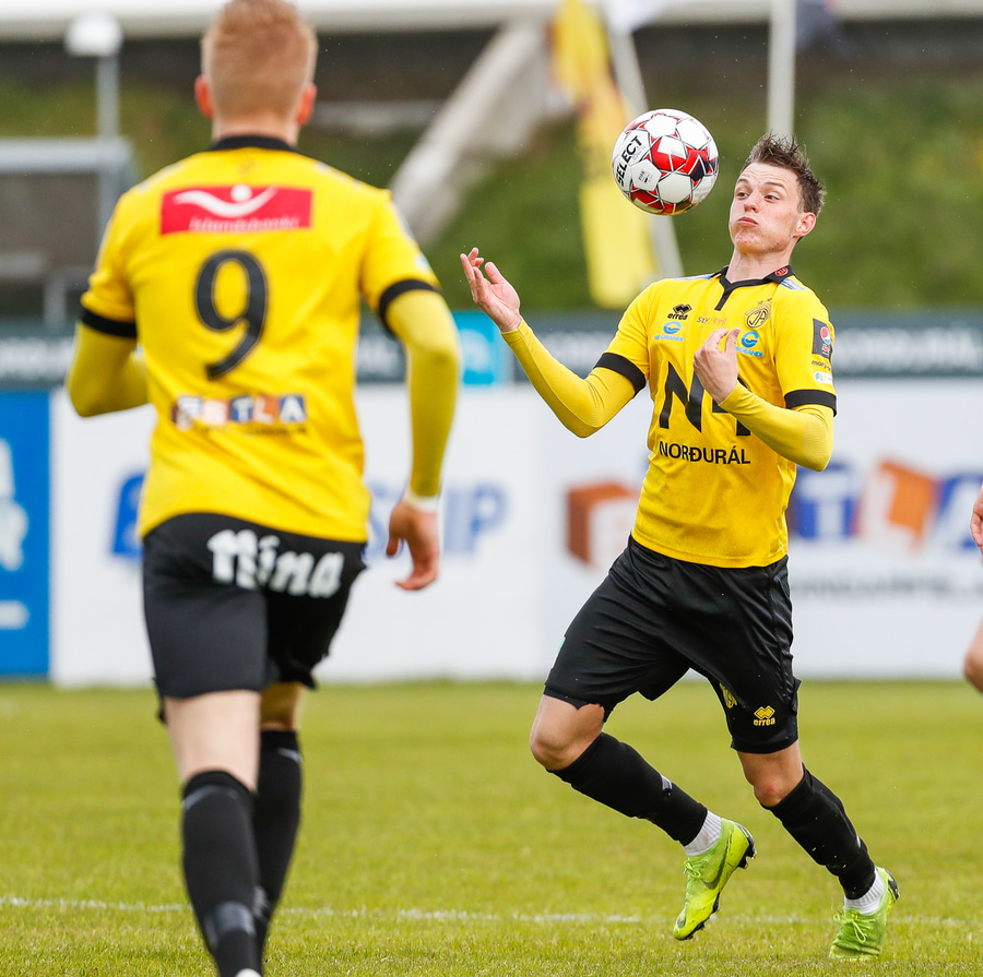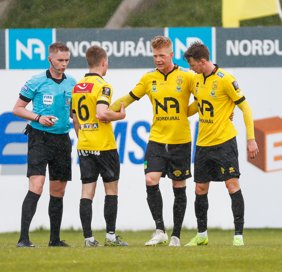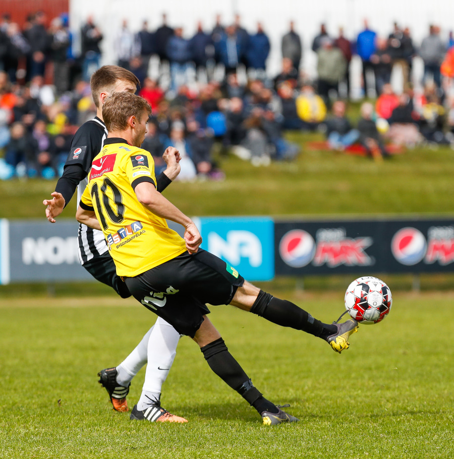 Fyrstu spyrnu leiksins tekur Viktor Jóns og sækja heimamenn í átt að Galito.