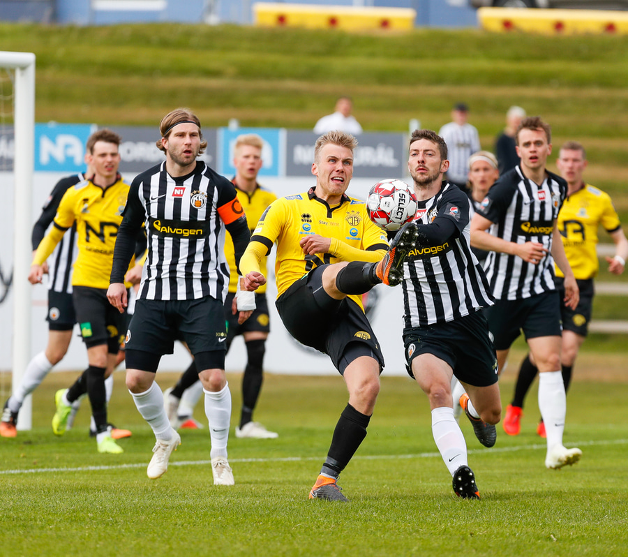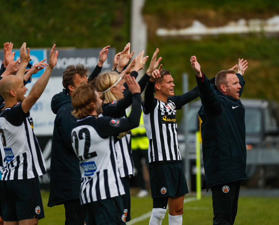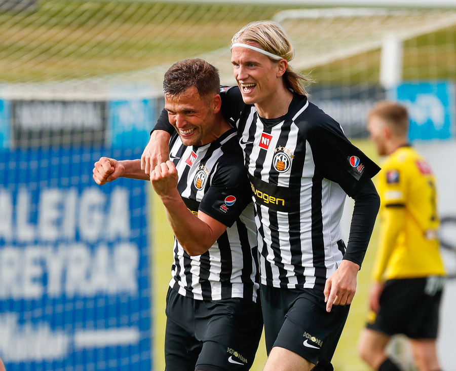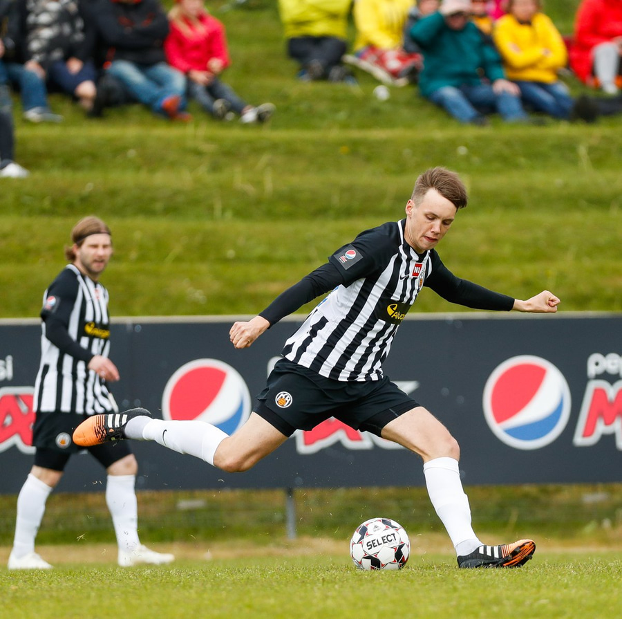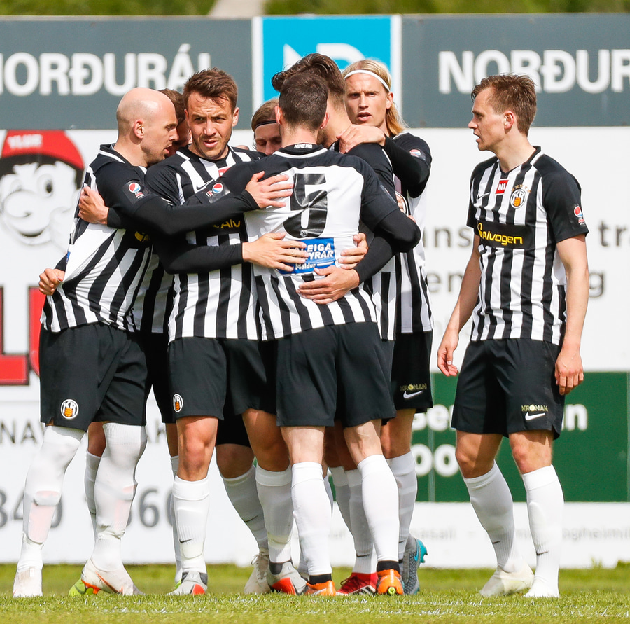 Fyrstu spyrnu leiksins tekur Viktor Jóns og sækja heimamenn í átt að Galito.