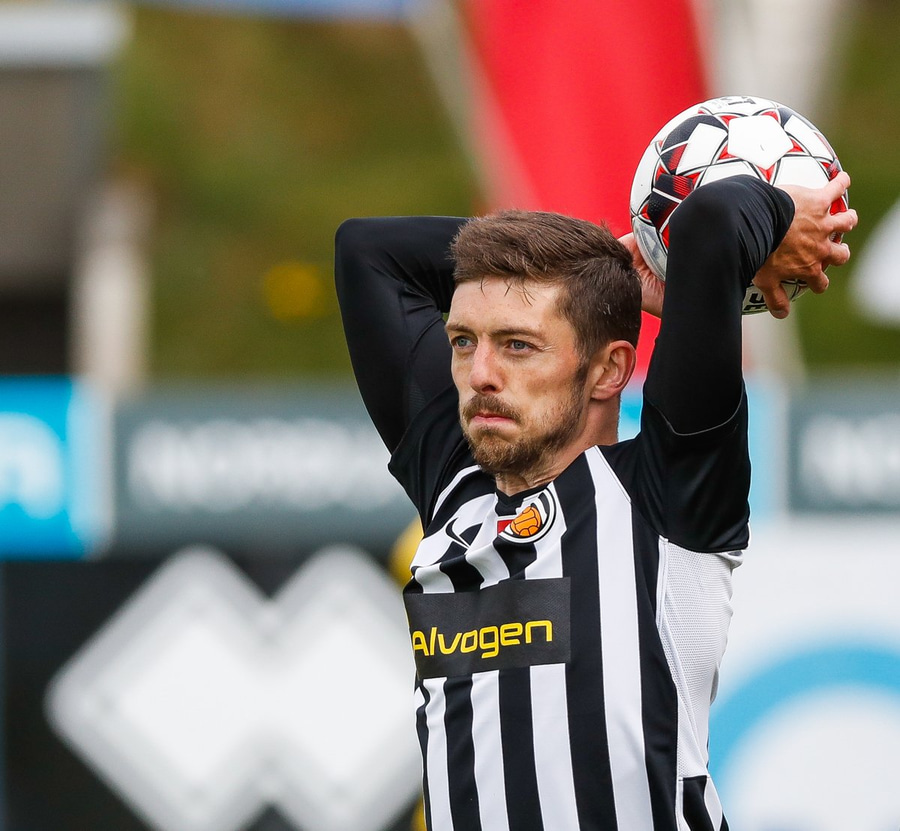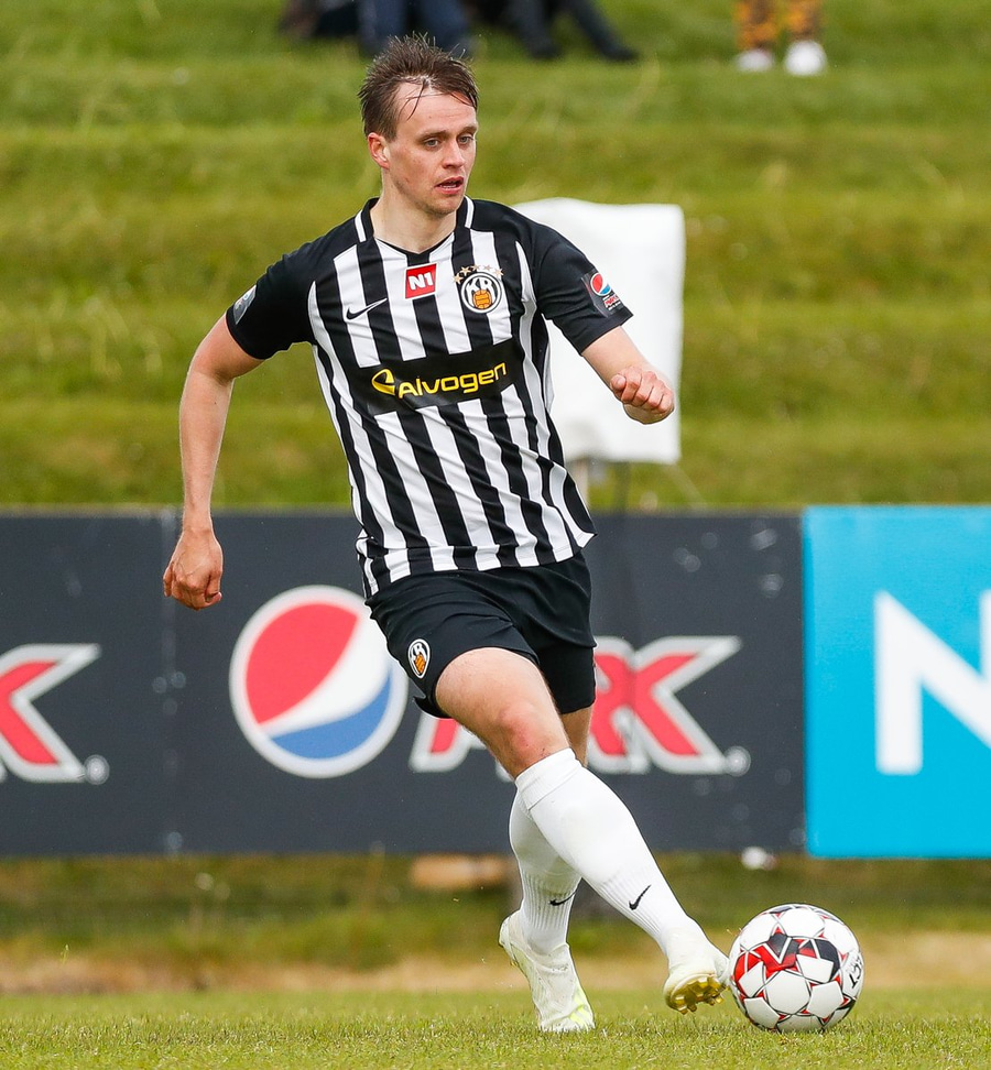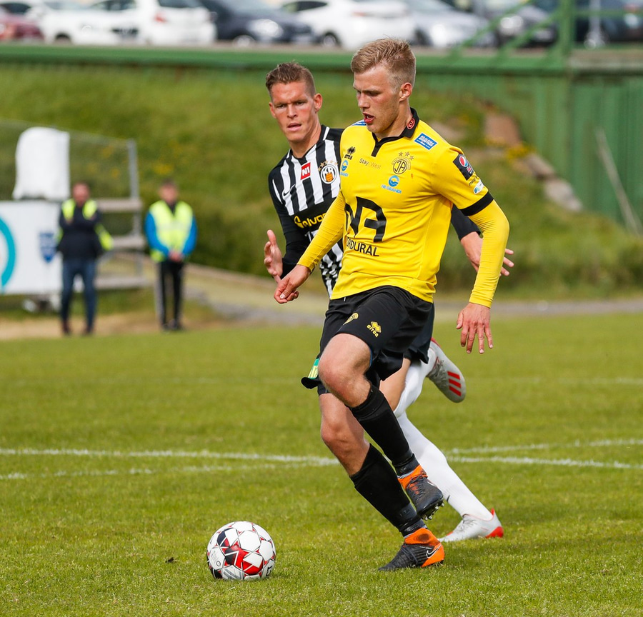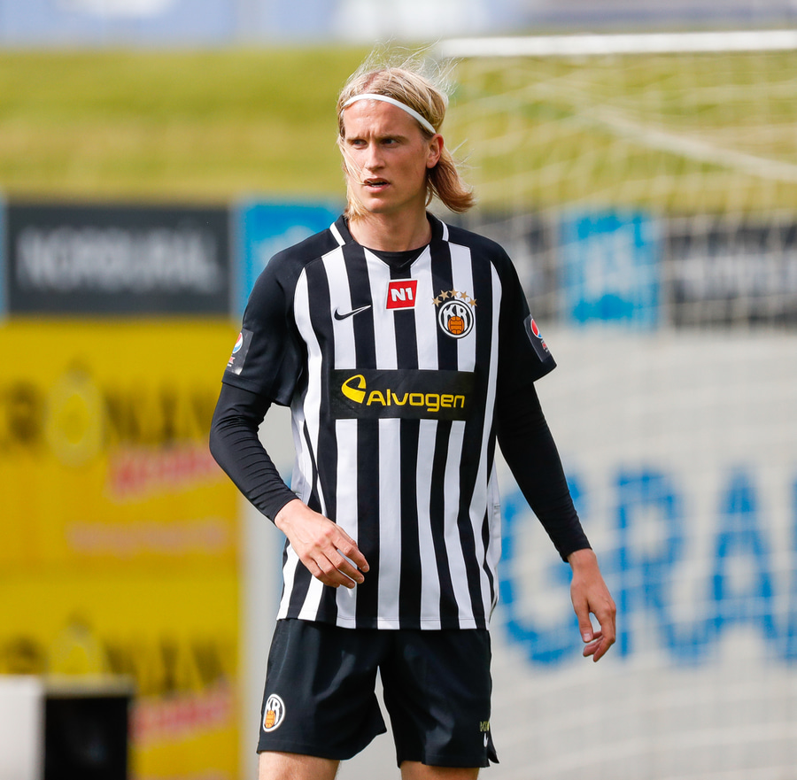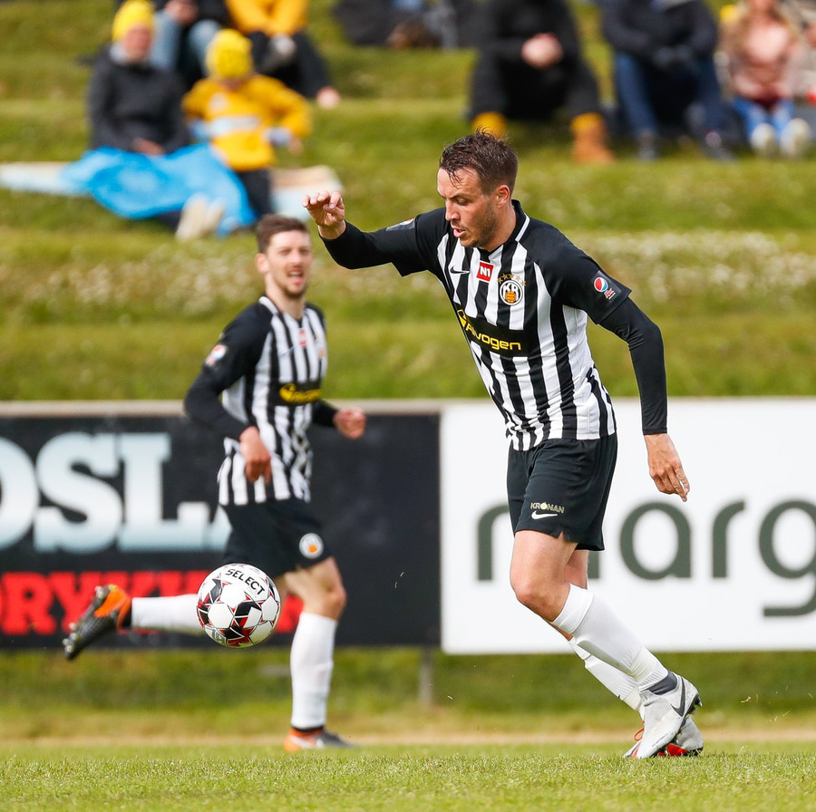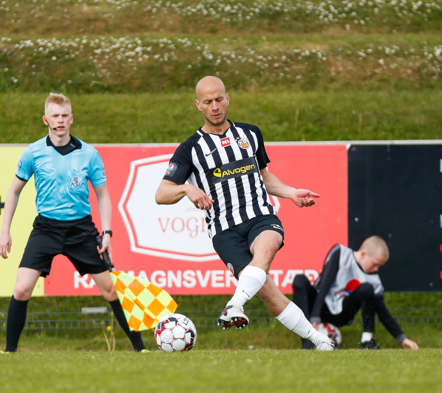 Arnór Sveinn bombar boltanum frá hægri og út til vinstri þar sem Óskar tekur fyrstu snertinguna beint framhjá Halli sem er skilinn eftir og Óskar brunar að markinu og reynir skotið með hægri sem var afleitt og fer laflaust og langt framhjá.