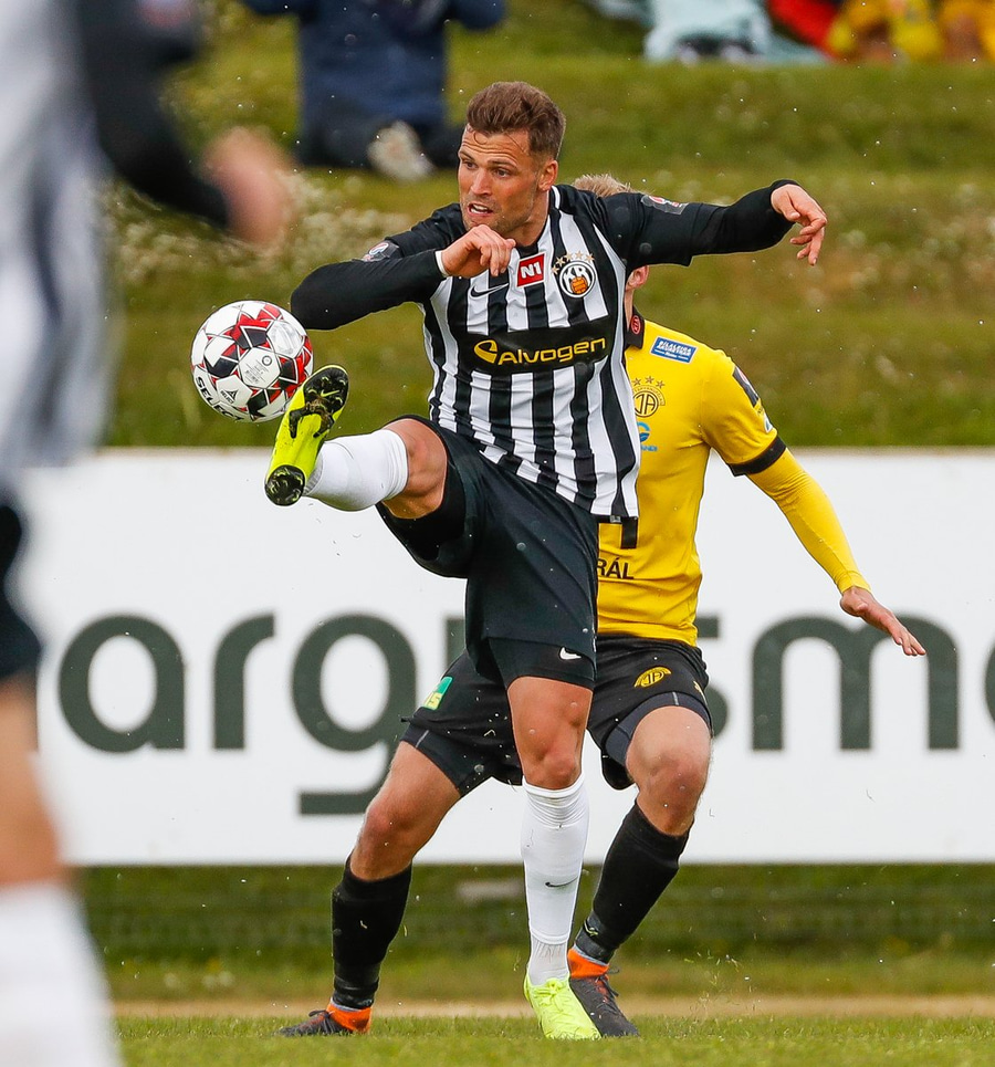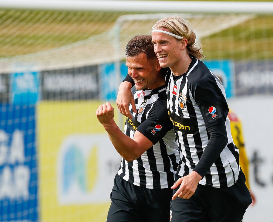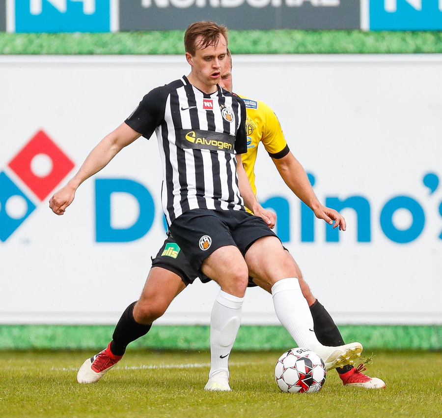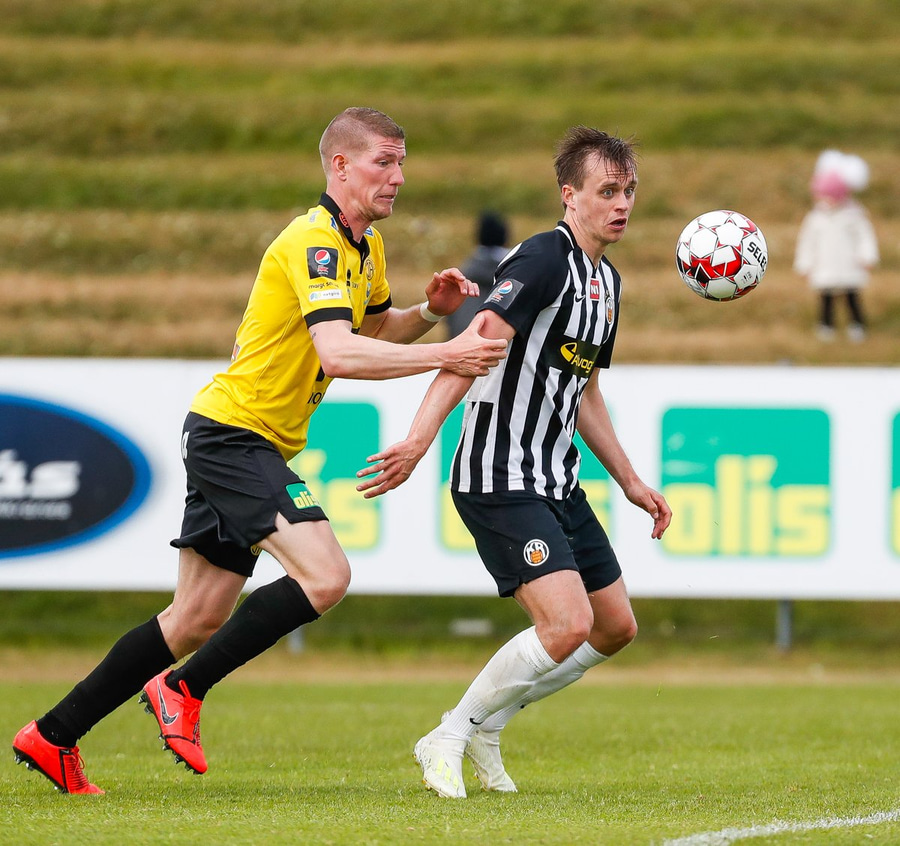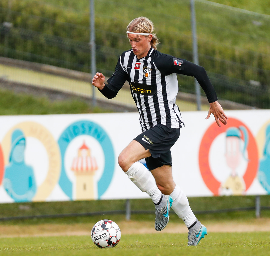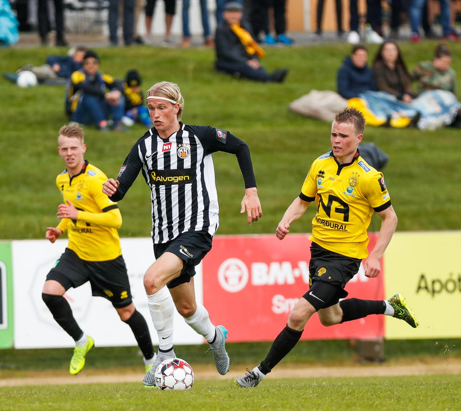 Arnór Sveinn bombar boltanum frá hægri og út til vinstri þar sem Óskar tekur fyrstu snertinguna beint framhjá Halli sem er skilinn eftir og Óskar brunar að markinu og reynir skotið með hægri sem var afleitt og fer laflaust og langt framhjá.