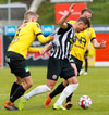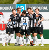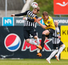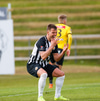 Tryggvi Hrafn tekur hornspyrnu fyrir Skagamenn sem fá færi en boltinn í mikilli þvögu og lekur svo framhjá markinu!