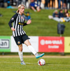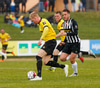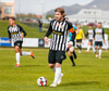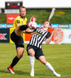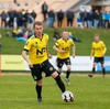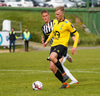 Langur bolti upp vinstra hornið á Hödda sem sækir hornspyrnu.