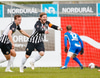 Boltinn fer í gegnum pakkann og hrekkur af Finni Tómas og í hendurnar á Beiti, hefði getað orðið hættulegra.