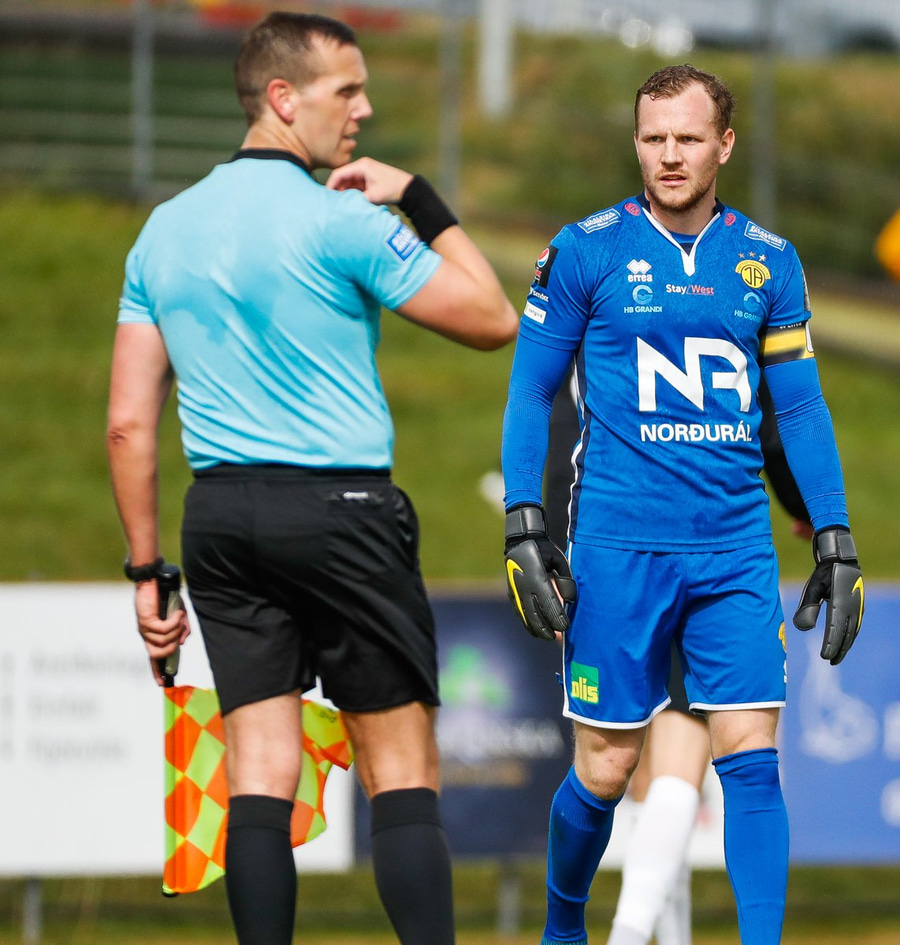 ÞÞÞ sækir hér hornspyrnu sem Tryggvi Hrafn tekur.