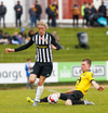Óskar sendir svakalega sendingu milli varnarmanna Skagamanna í hlaupið hjá Kidda Jóns sem keyrir inn á teiginn og fær víti.