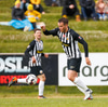 Óskar Hrafn reynir að keyra í gegnum þrjá Skagamenn í átt að teignum en tapar boltanum sem rennur fyrir fætur Pálma sem tekur skotið í fyrsta en boltinn fer næstum yfir Akraneshöllina.