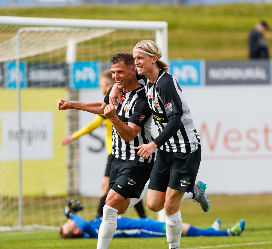 ÞÞÞ sendir draumabolta inn á teiginn á fjær þar sem Viktor Jóns mætir og stangar boltann í slánna, stöngina, í Beiti og inn!