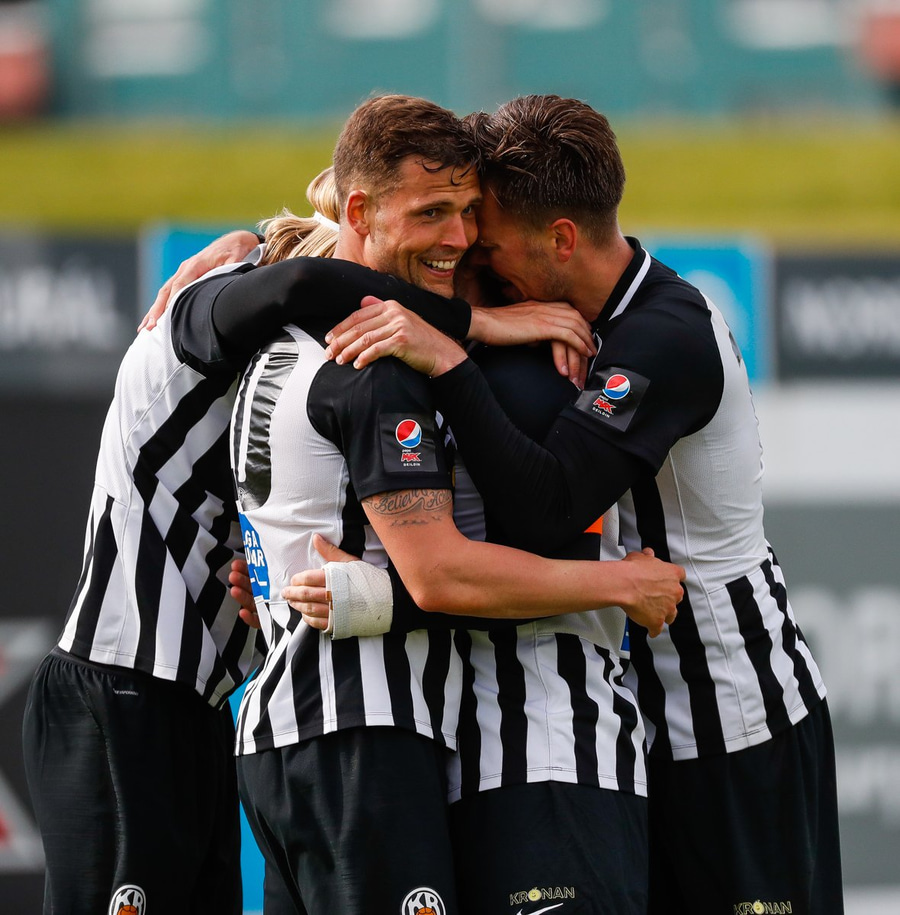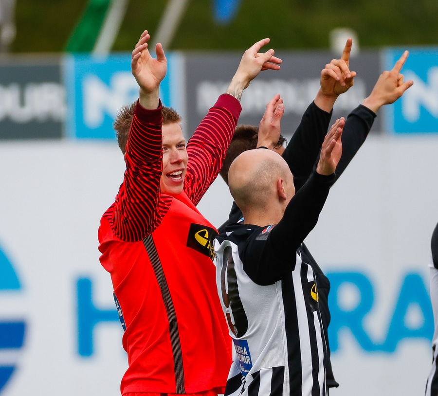 Óskar Örn tekur aukaspyrnuna og bombar í stöngina, boltinn hrekkur óvænt til Tobias sem heldur næstum í stöngina en setur boltann framhjá!!!