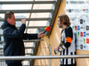 Það er allt klárt og liðin ganga hér niður rampinn á eftir Helga Mikael og kollegum hans.