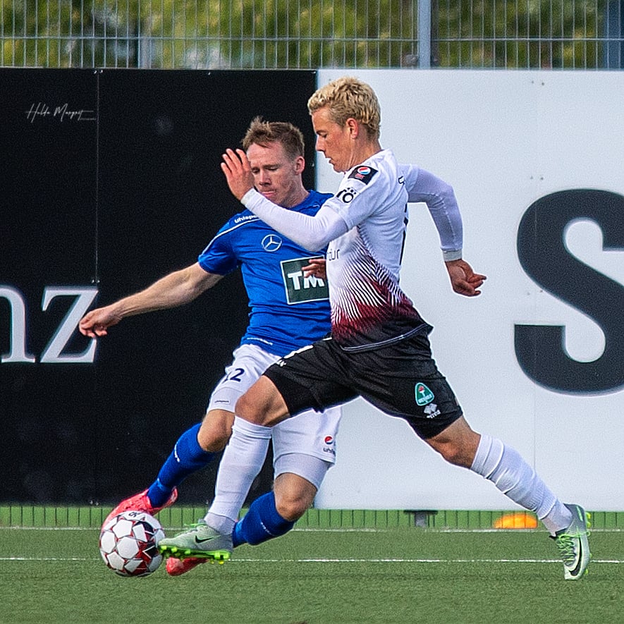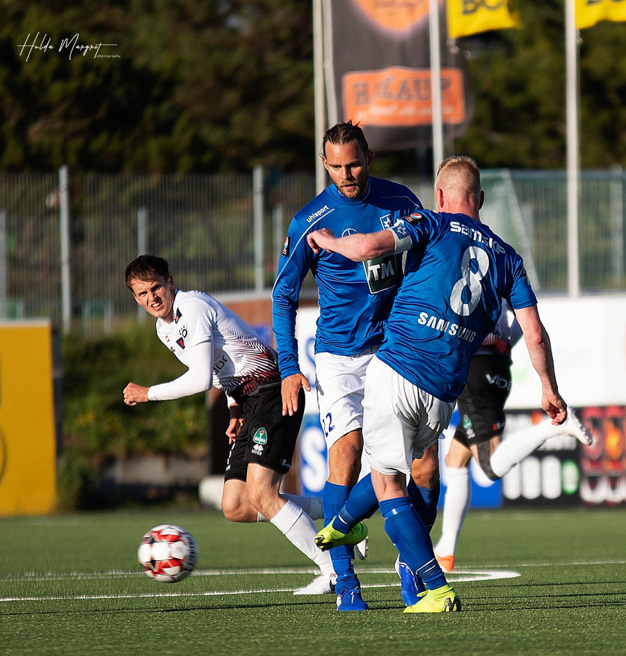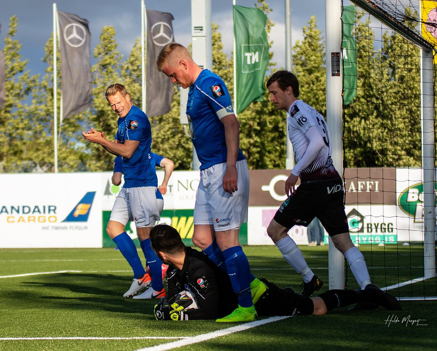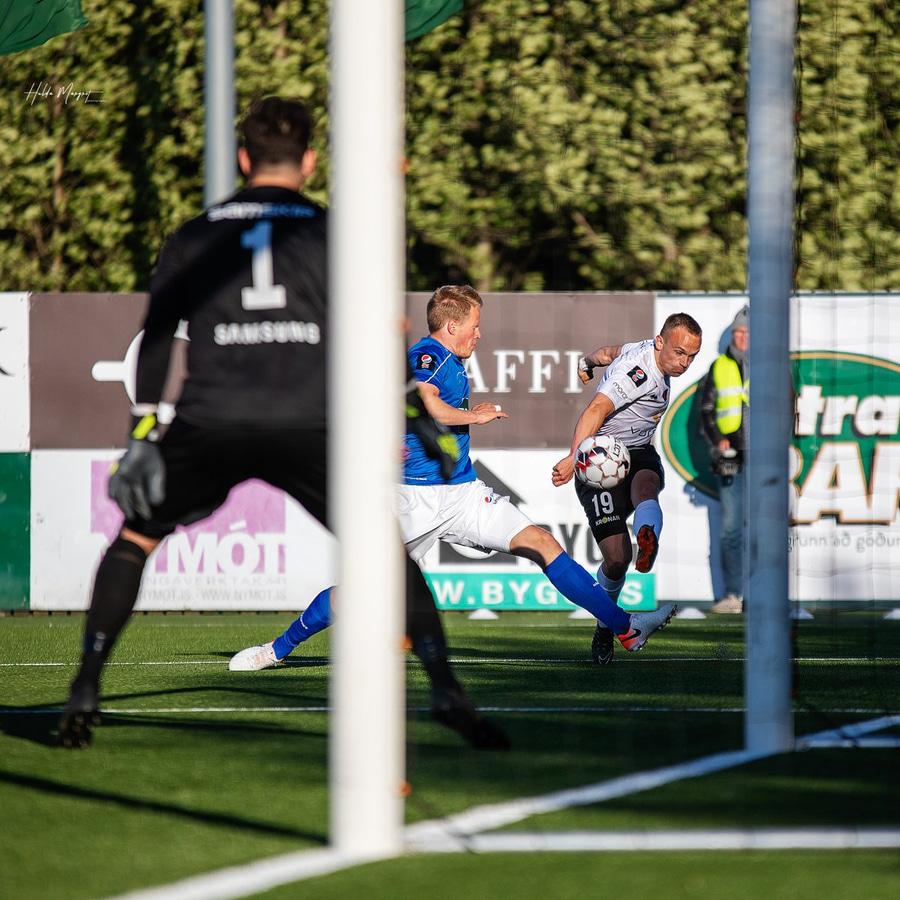 Vá þarna mátti litlu muna, sending inná teiginn meðfram jörðinni sem er að detta fyrir Höskuld en Brynjar Gauti nær mjög mikilvægri snertingu og bjargar sennilega bara marki þarna.